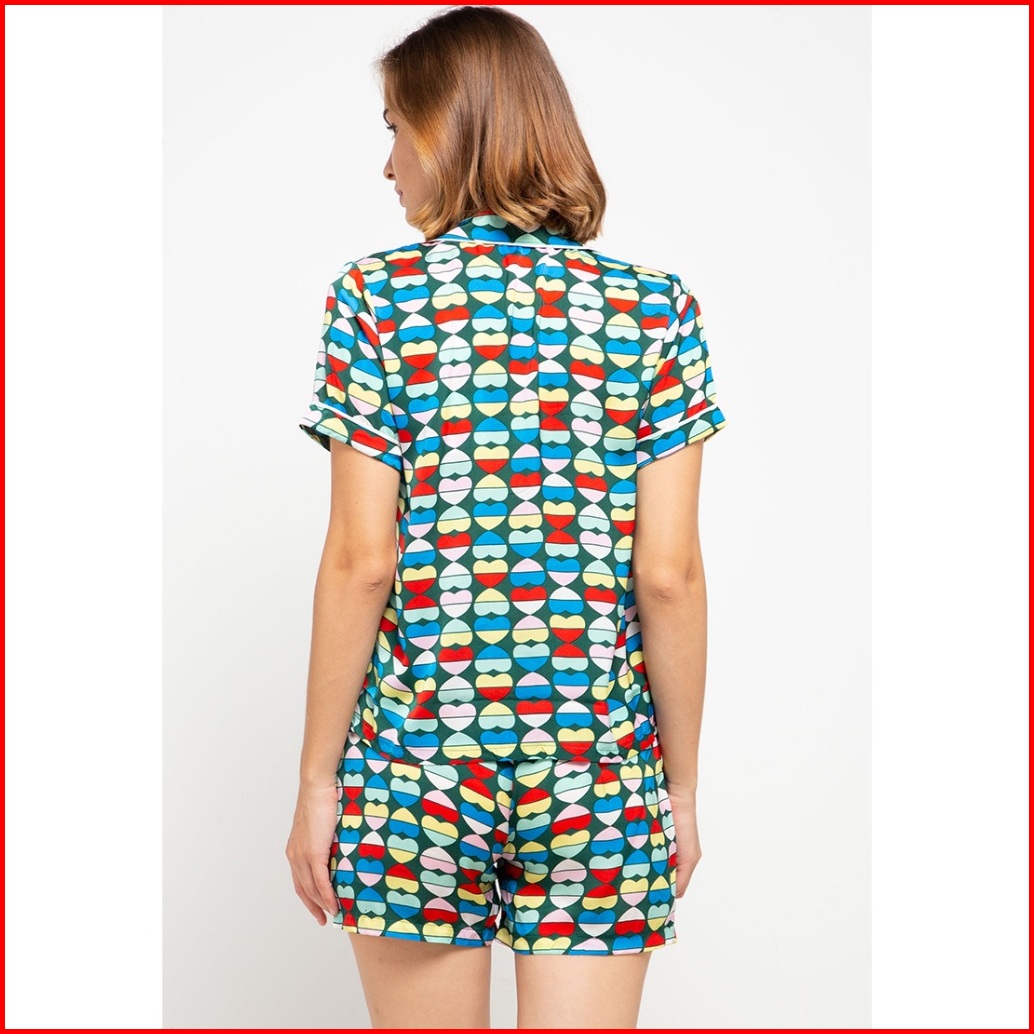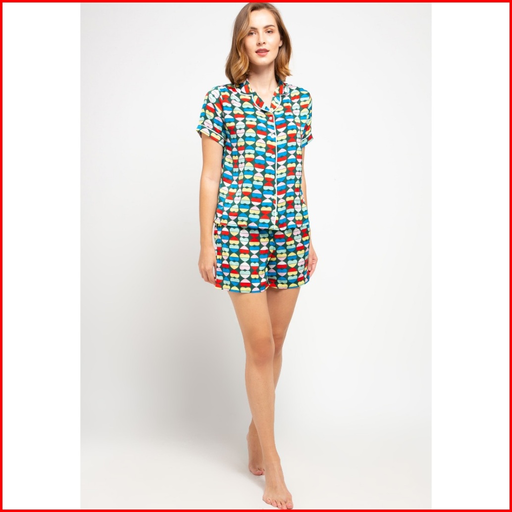 Set Pyjama Ladies Sleepwear 304 Satin Green Red Lengan Pendek Celana Pendek A2008 21125 Pajamas Baju Tidur Wanita Kancin