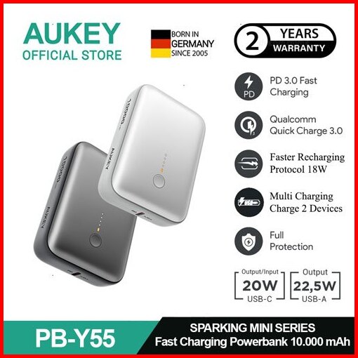 Fs Aukey Mini Powerbank 10000 Mah 22.5 W Fast Charging Type C Usb A Pb-y55