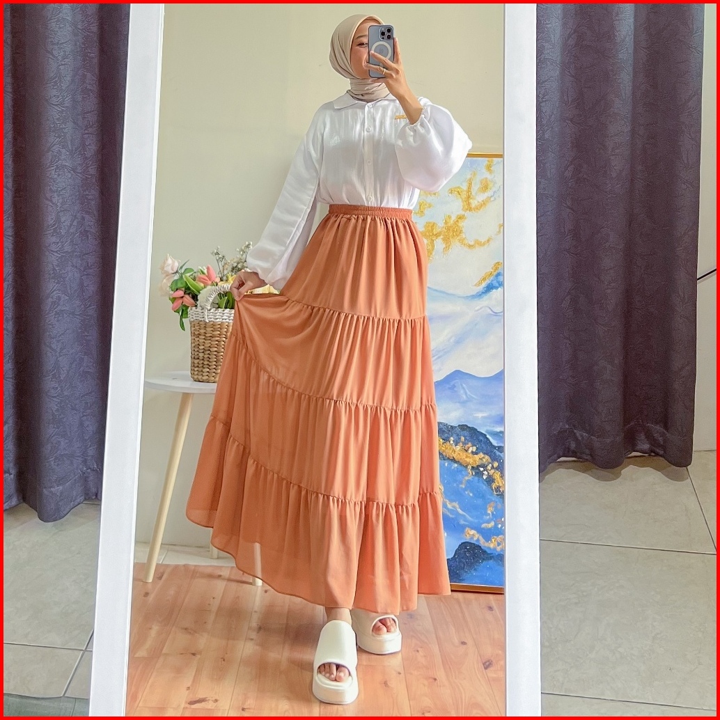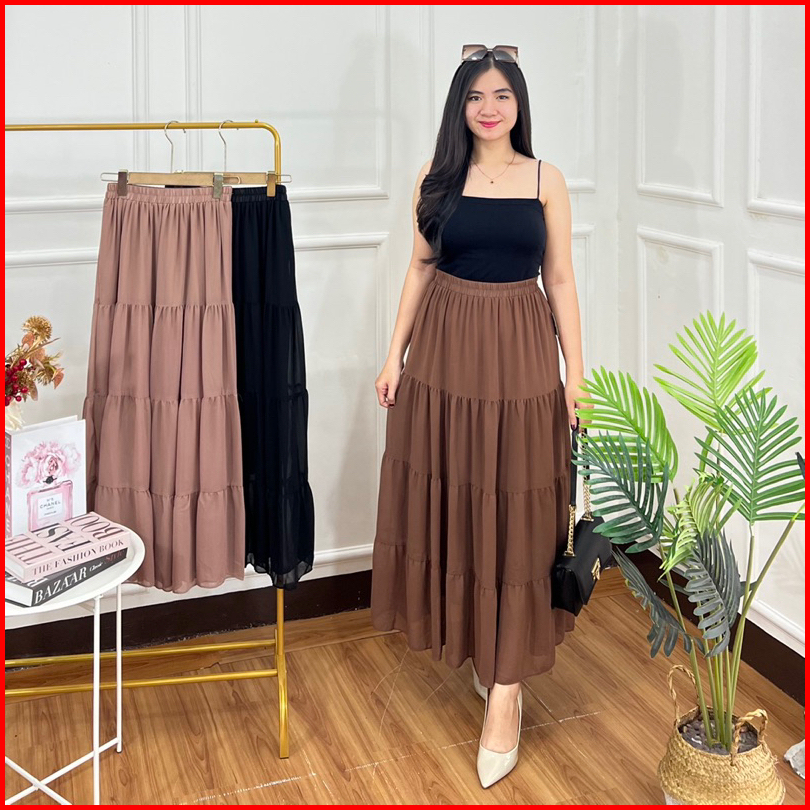 Rok Rufla Midi Skirt Ceruty Full Furing Jumbo Premium Rok Panjang Wanita Ruffle Rempel Korean Style