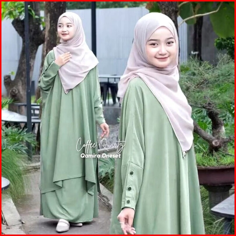 Abaya- Setelan Rok Anak Perempuan Tanggung Bahan Crinkle Airflow Long Tunik Qamira One Set