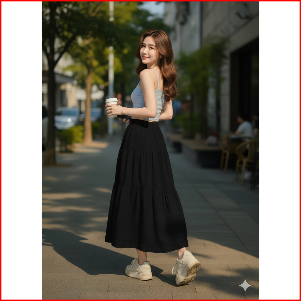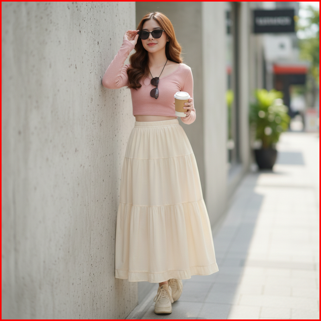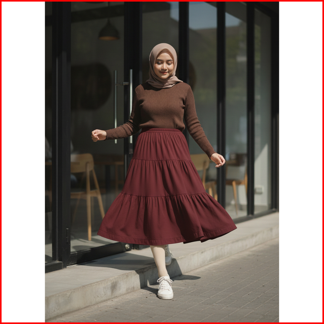 Rok Rufla Midi Skirt Ceruty Babydol Rok Canda Rempel Premium Full Furing Rok Kekinian Termurah