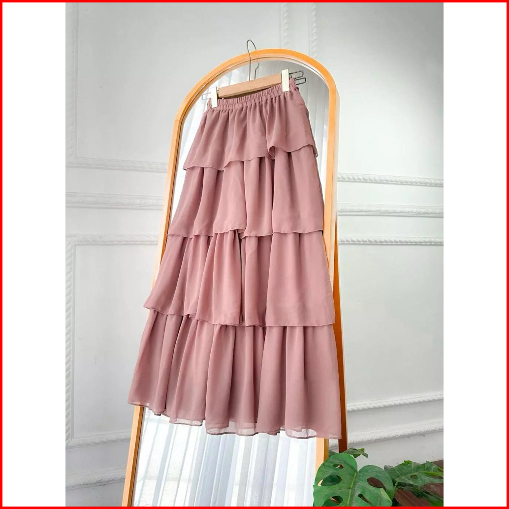 Diskon Heidi Rok Ceruty Susun Empat 4 Maxi Skirt Rufla Ruffle Rempel Full Midi Termurah Eksklusif
