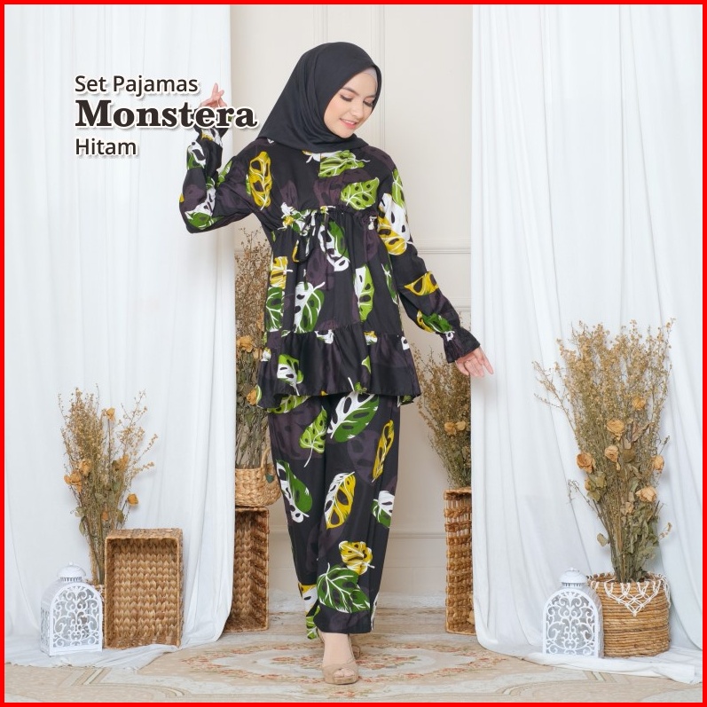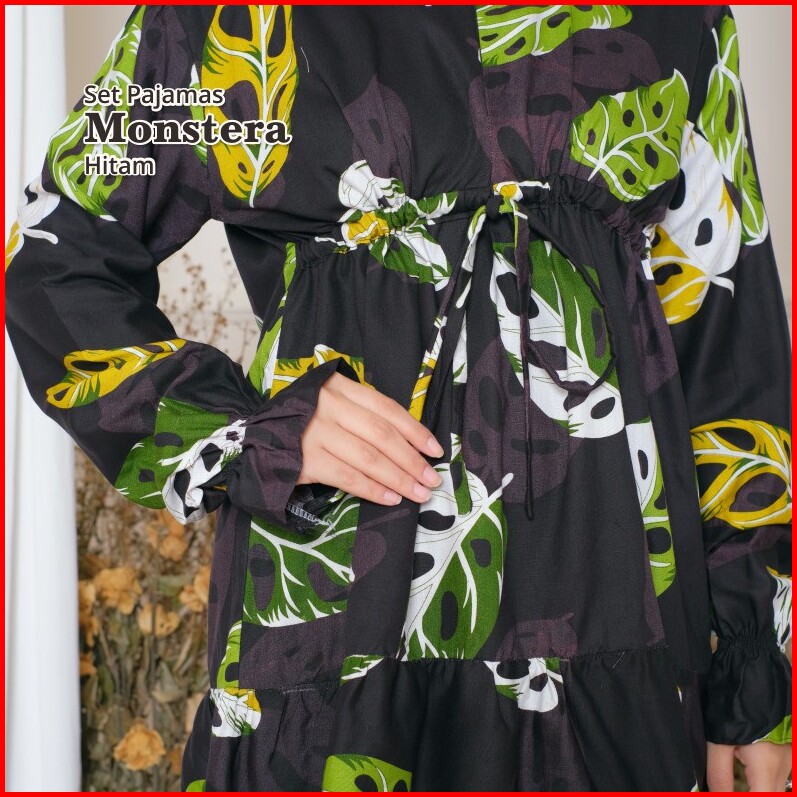 Melika - Set Pajamas Piyama Muslim Rayon Lengan Kerut Busui Bumil Friendly Motif