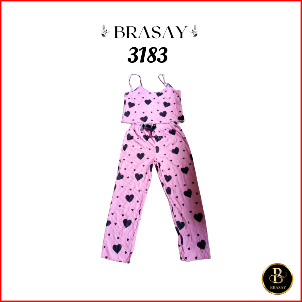 Brasay Set Pakaian Tidur Wanita Two Piece Celana Panjang Baju Tidur Set Piyama Wanita Motif Love 3183