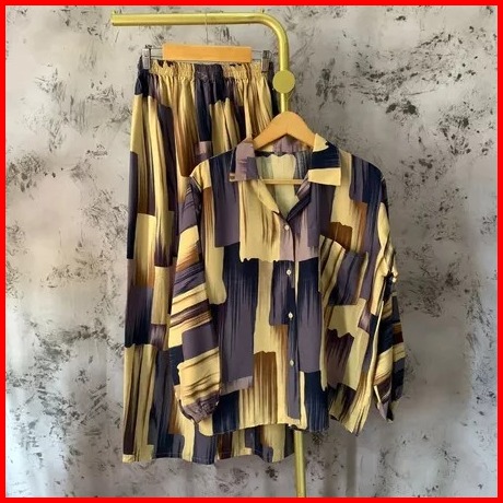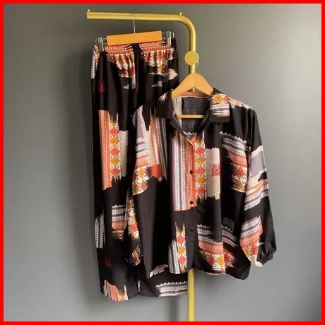 Vibeva - Oneset Piyama Wanita Celana Rayon Motif