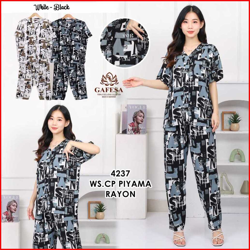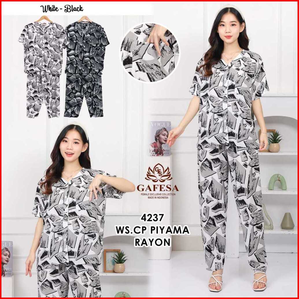 Gafesa - Set Piyama Leher V Rayon Premium Homedress Wanita Baju Tidur Wanita Lengan Pendek Celana Panjang