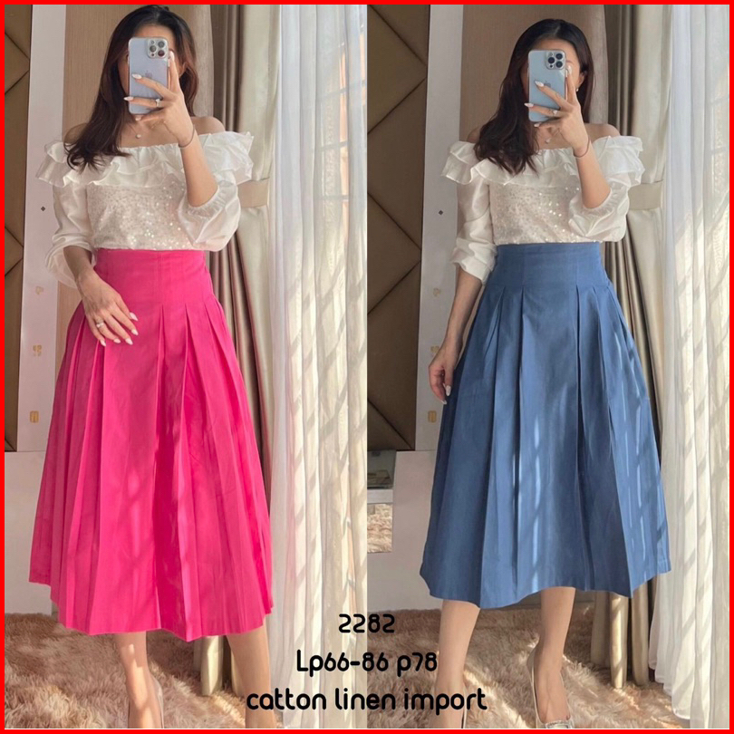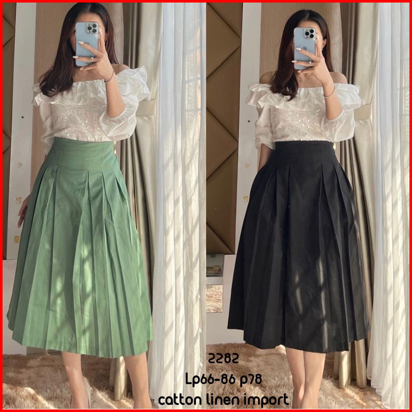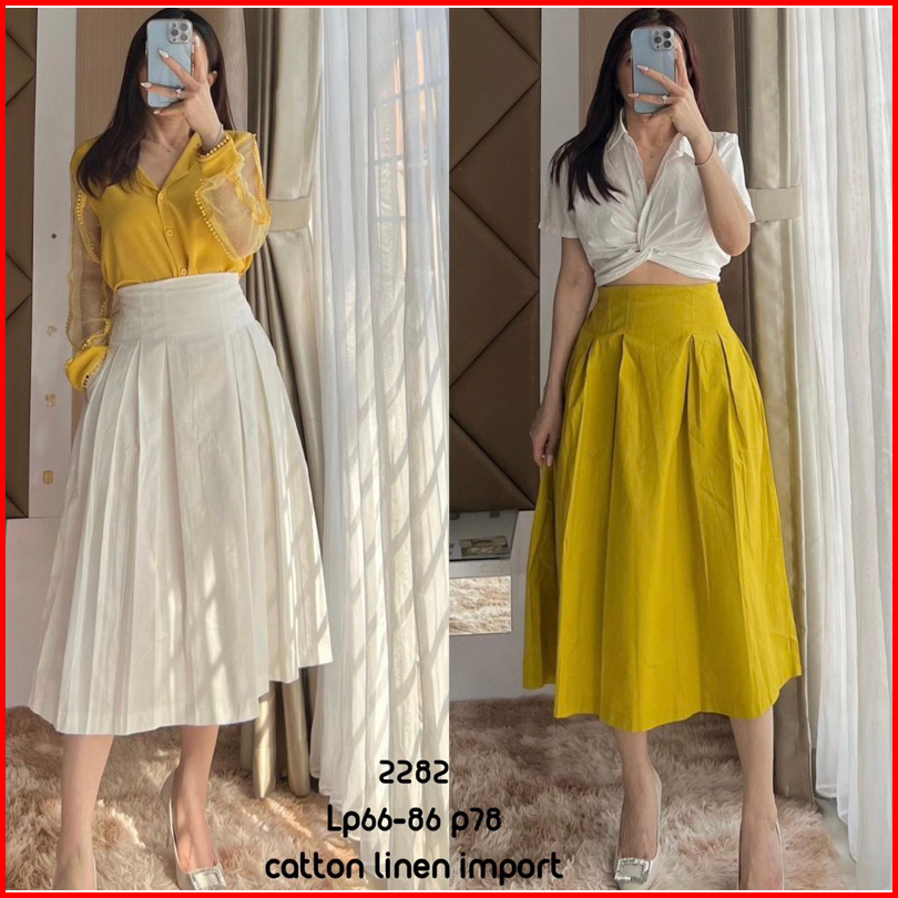 Moneluxe - Jeine Skirt Rok Wanita Midi Maxi Terbaru Cotton Linen Import Premium