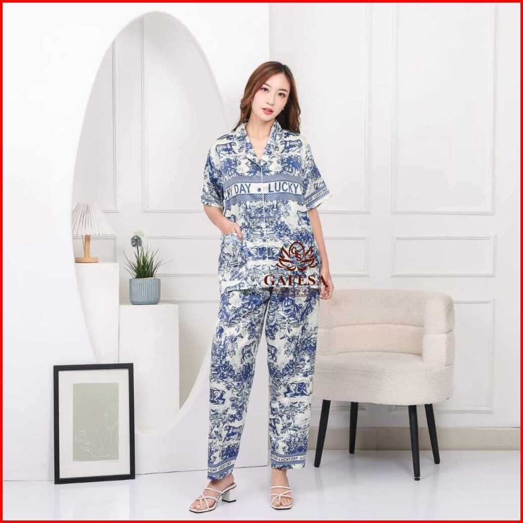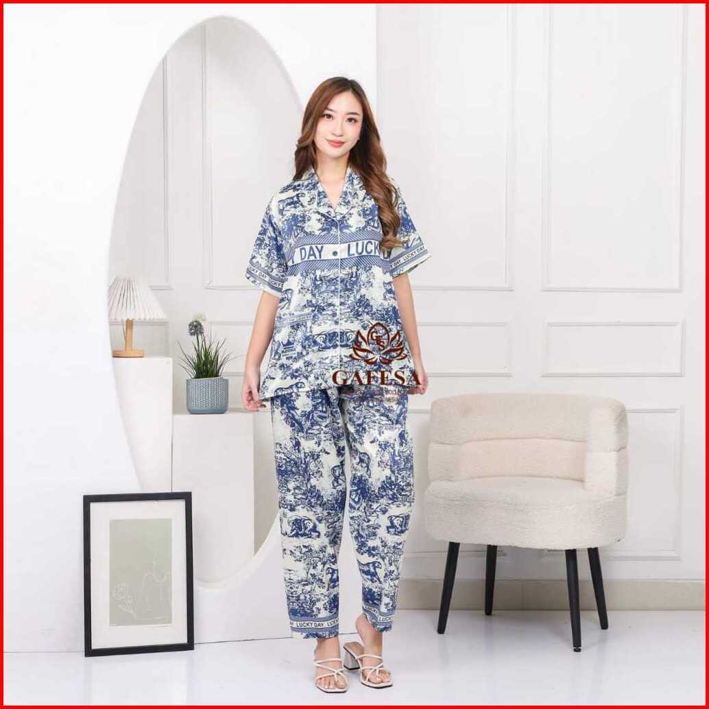 Gafesa - Pajamas Piyama Premium Velvet One Set Wanita Set Baju Tidur Wanita Lengan Pendek Celana Panjang