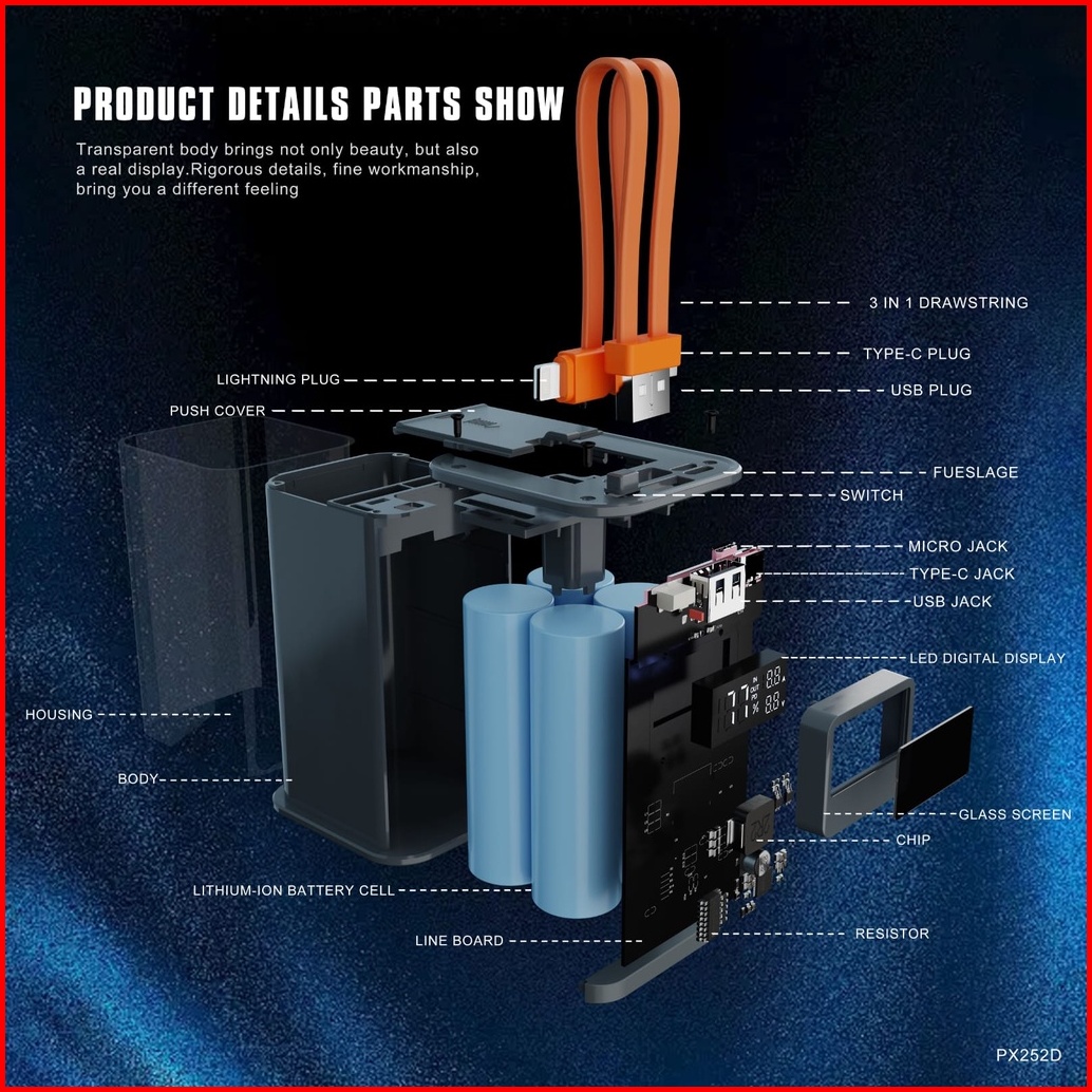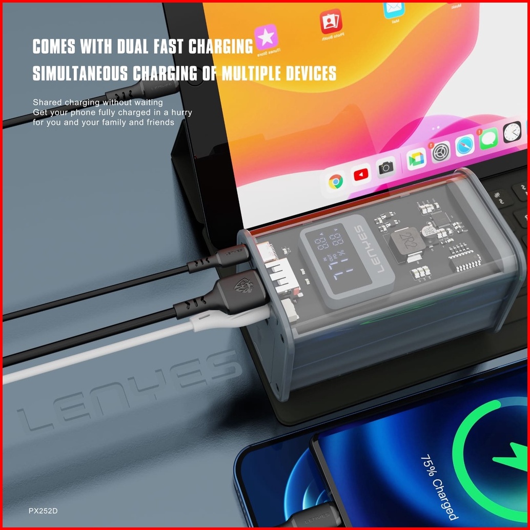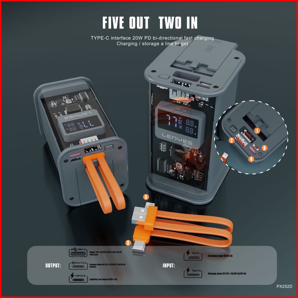 Lenyes Px252d Powerbank 20000mah 22.5w Pd20w Transparan Super Fast Charging Digital Display Indicator Real Capacity Powe