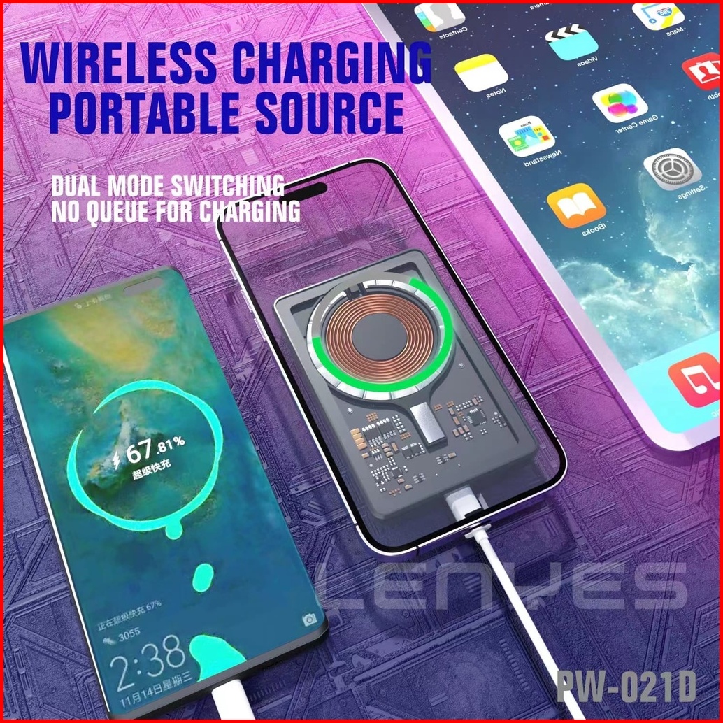 Lenyes Pw021d Powerbank Transparan 5000mah Wireless Fast Charging Pd20w 15w Magsafe Power Bank Real Capacity Original