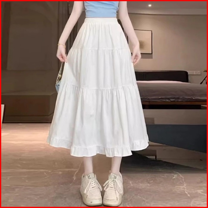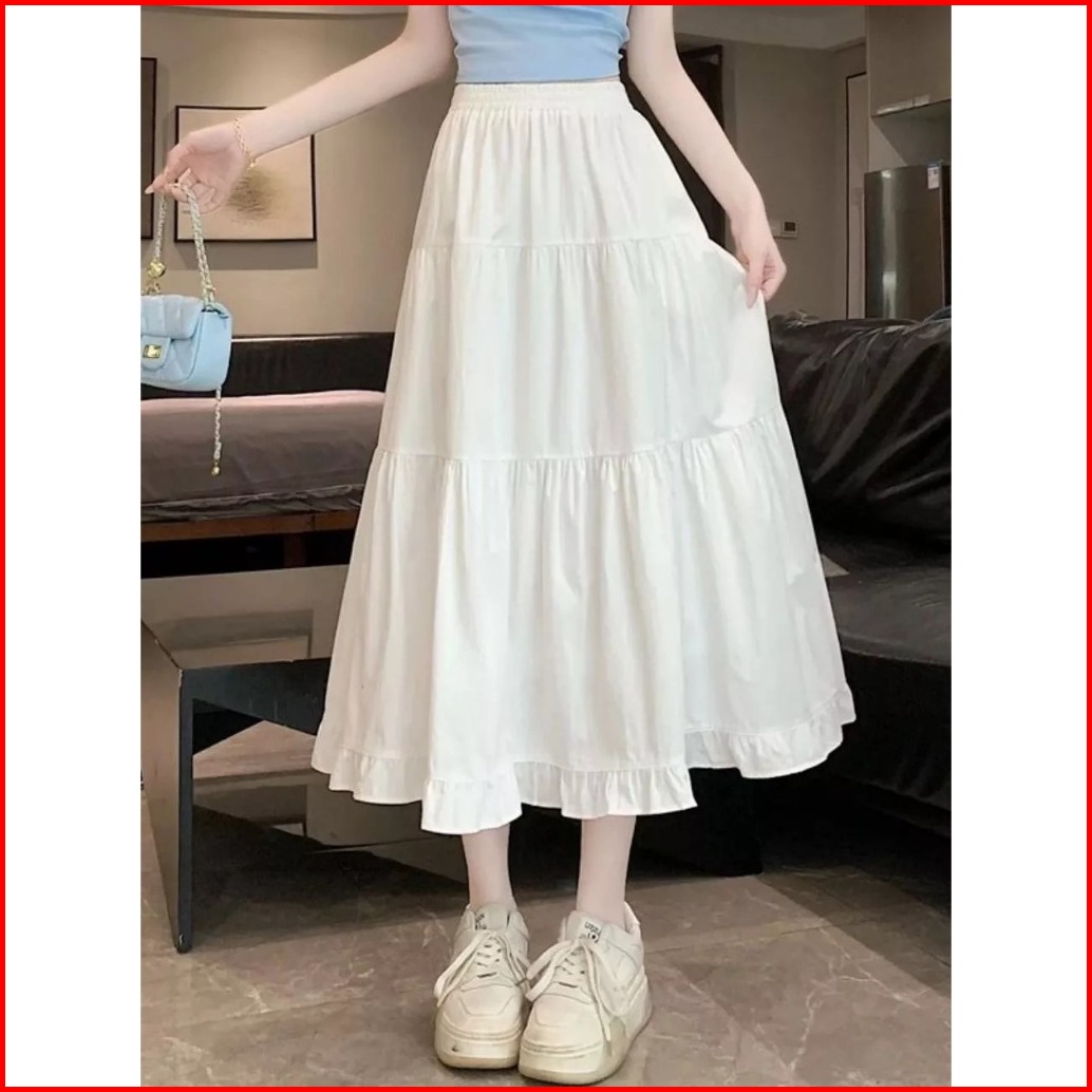 Rok Rufla Midi Skirt Ceruty Rok Rempel Full Furing Jumbo Rok Premium Eksklusif Wanita Termurah