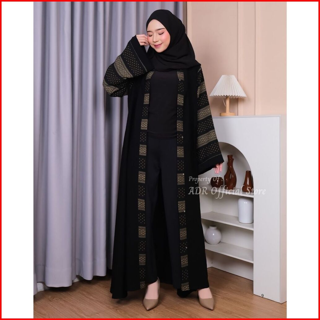 Abaya Marwah Dress Muslim Wanita Bahan Jetblack Premium Gamis Arab Hitam Outer Busui Mewah Kekinian