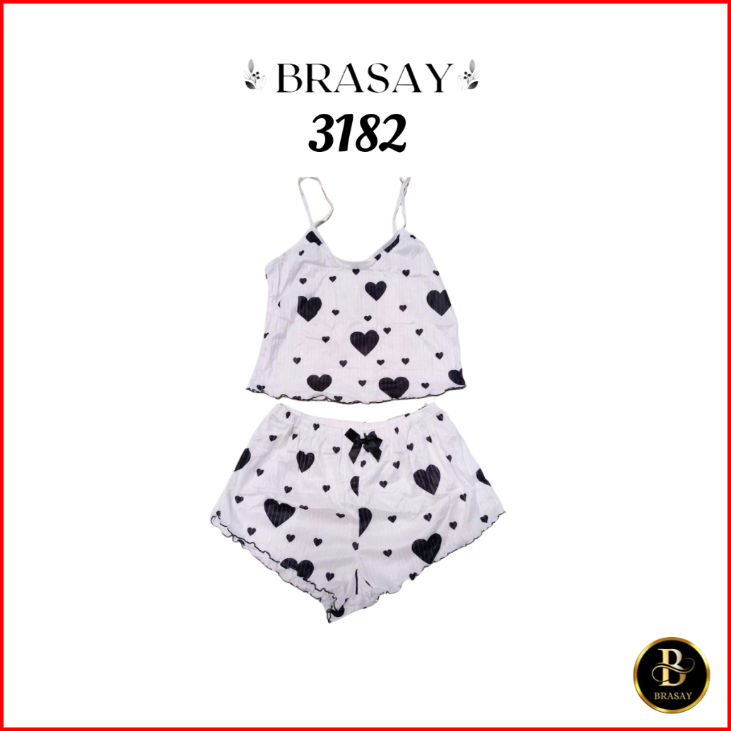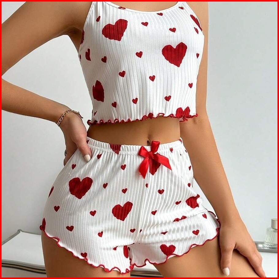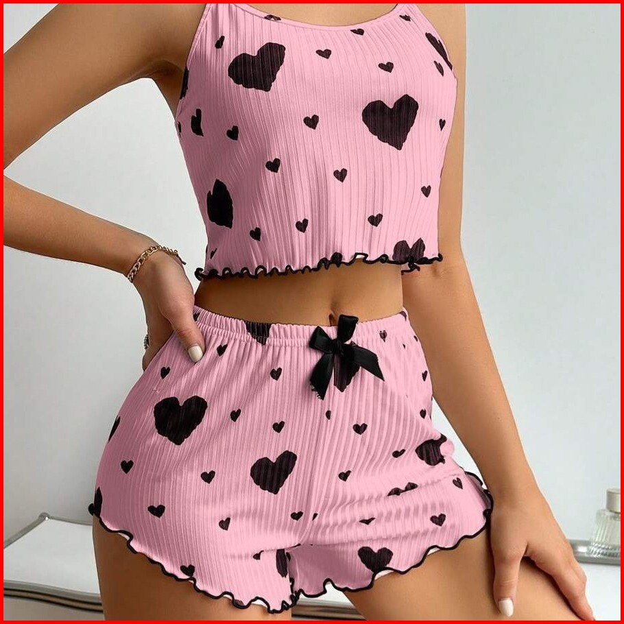 Brasay Set Pakaian Tidur Wanita Set New Motif Korea Baju Tidur Wanita Motif Hati Garis-garis 3182