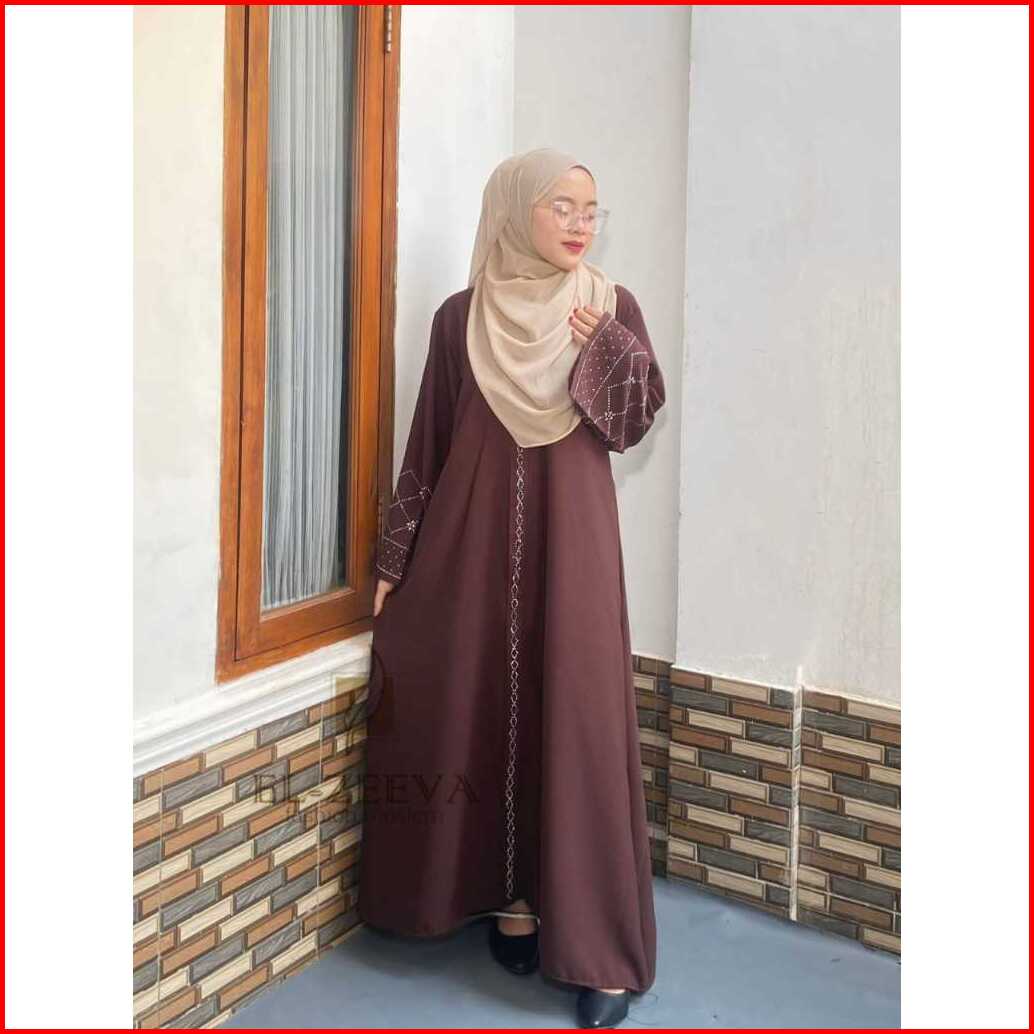 Elzeeva Umarah Abaya Resleting Depan Full Bisa Dijadikan Outer Bahan Arabian Wolpeach Size Smlxl