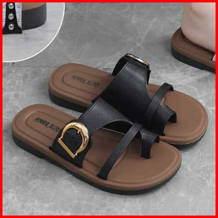 Sandal Slop Wanita Brkn Korean Import Sol Empuk Elastis Anti Slip Variasi Gesper 009-h4