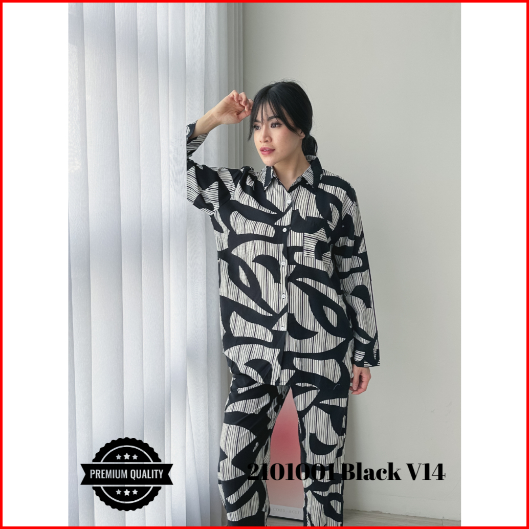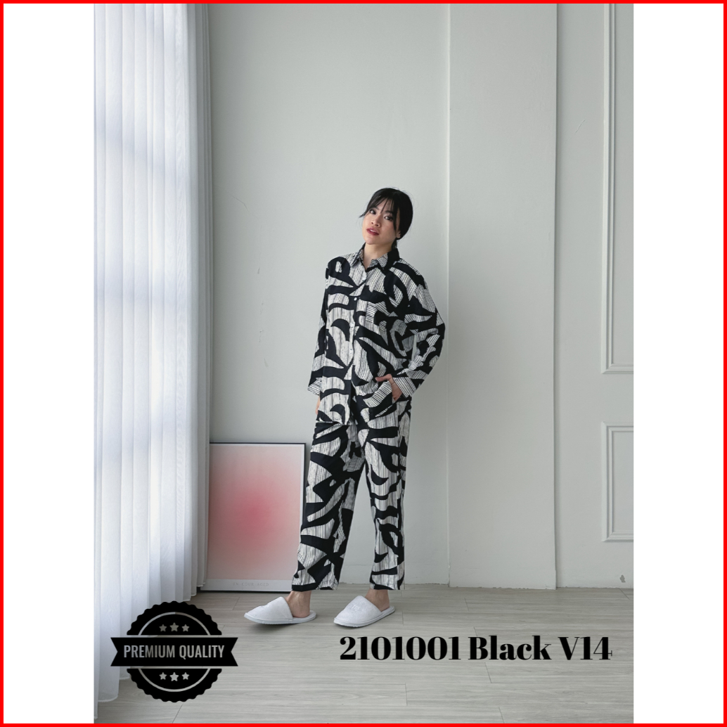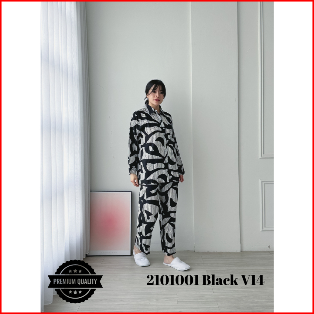 Cammomile 2101001 Setelan Piyama Wanita Lengan Panjang Black V14