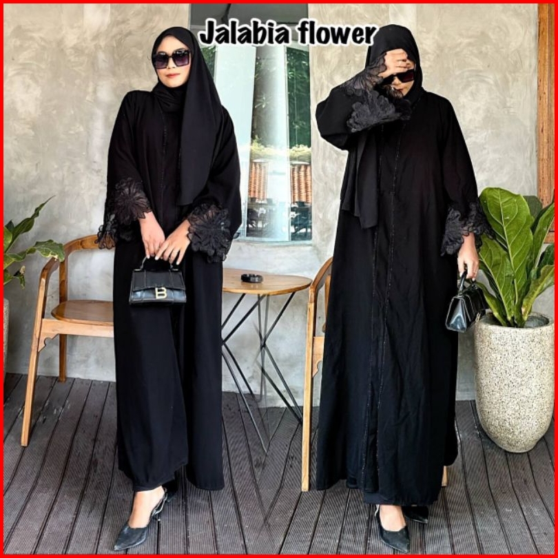 Abaya Hitam Wanita Terbaru Arab Dress Muslim Turkey Maxi Bordir Mata Dubai Jalabia Flower