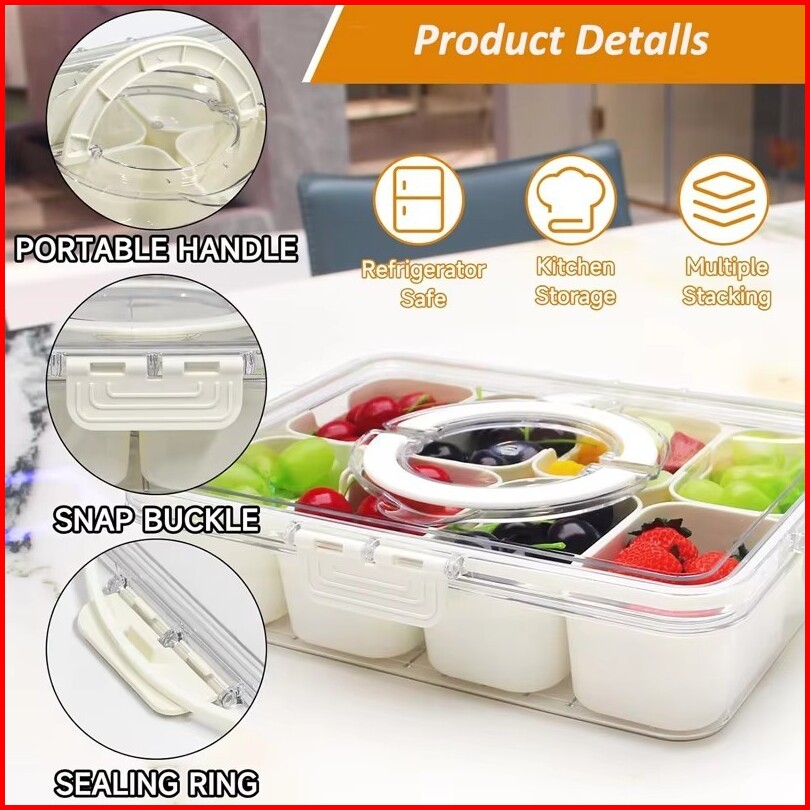 8 Grids Divided Serving Tray Storage Box Kontainer Kulkas Tempat Penyimpanan Kotak Dengan Sekat Dan Tutup Yang Tersegel