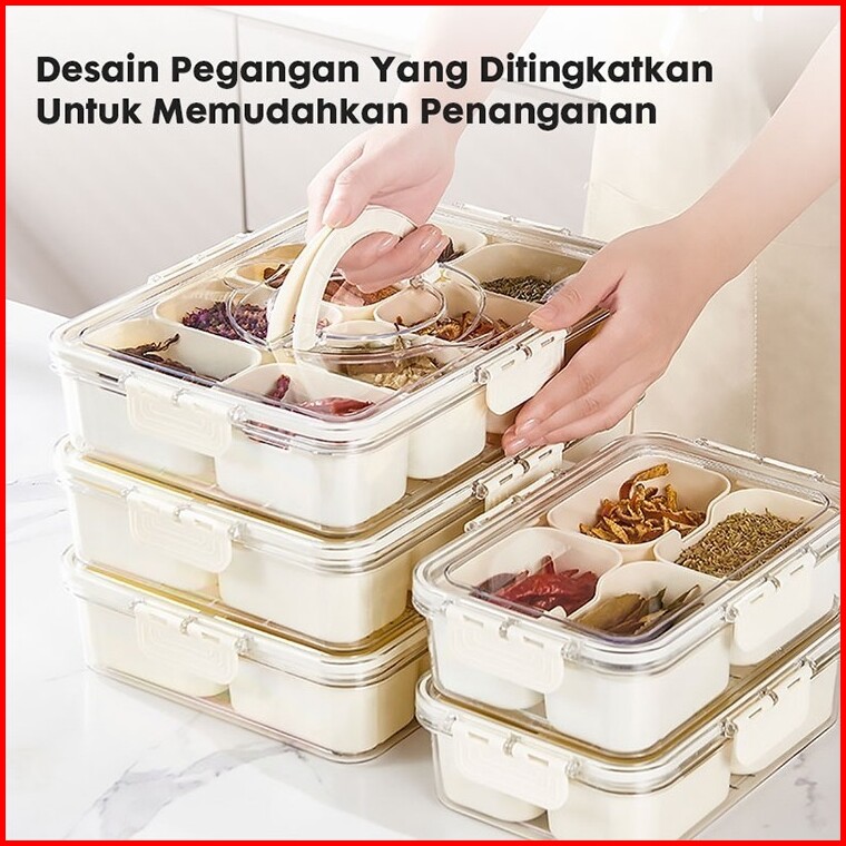 Paus Biru - Kotak Penyimpanan Makanan Anti Tumpah 8 Sekat Wadah Sayur Dan Bahan Makanan Buah Di Kulkas Food Kontainer