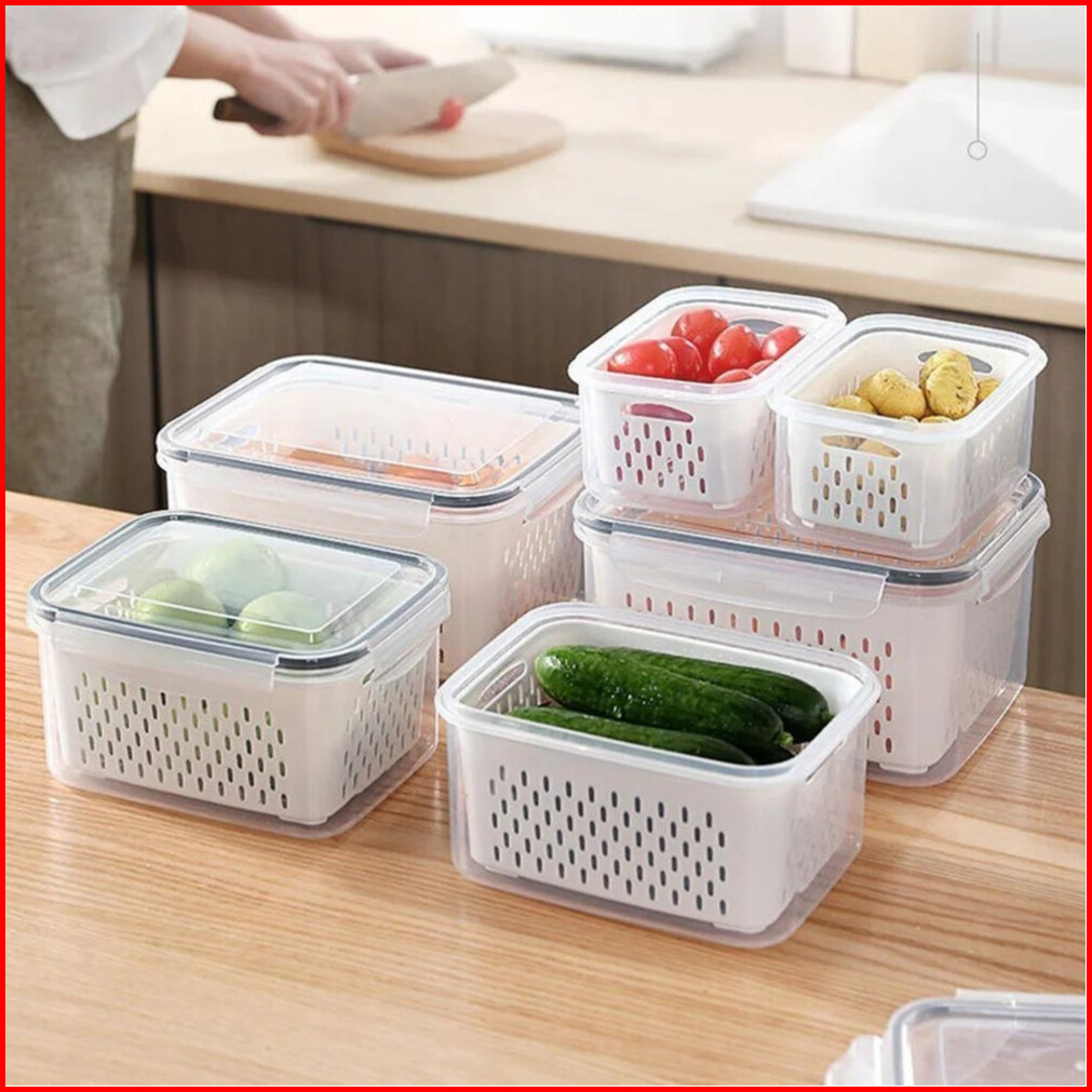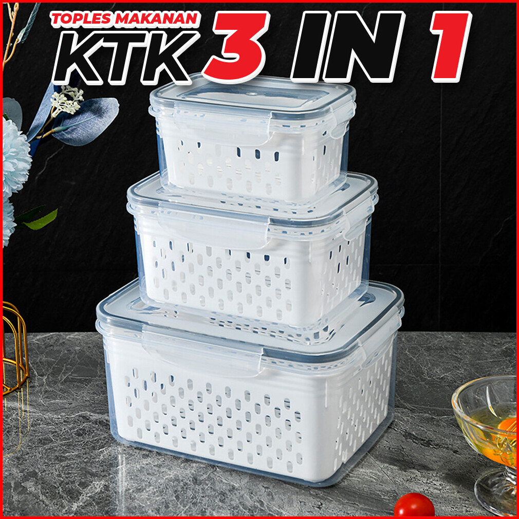 Dtg - Kotak Penyimpanan Makanan 3 In 1 Wadah Saringan Pengering Sayur Kontainer Tirisan Kotak Bxh
