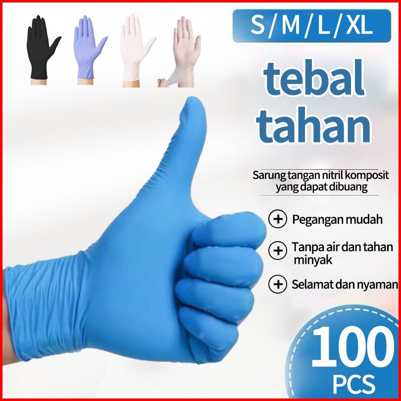 Sarung Tangan Nitril Sekali Pakai Sarung Tangan Lateks S-m-l-xl 4 Ukuran 1 Kotak Berisi 100 Sarung Tangan