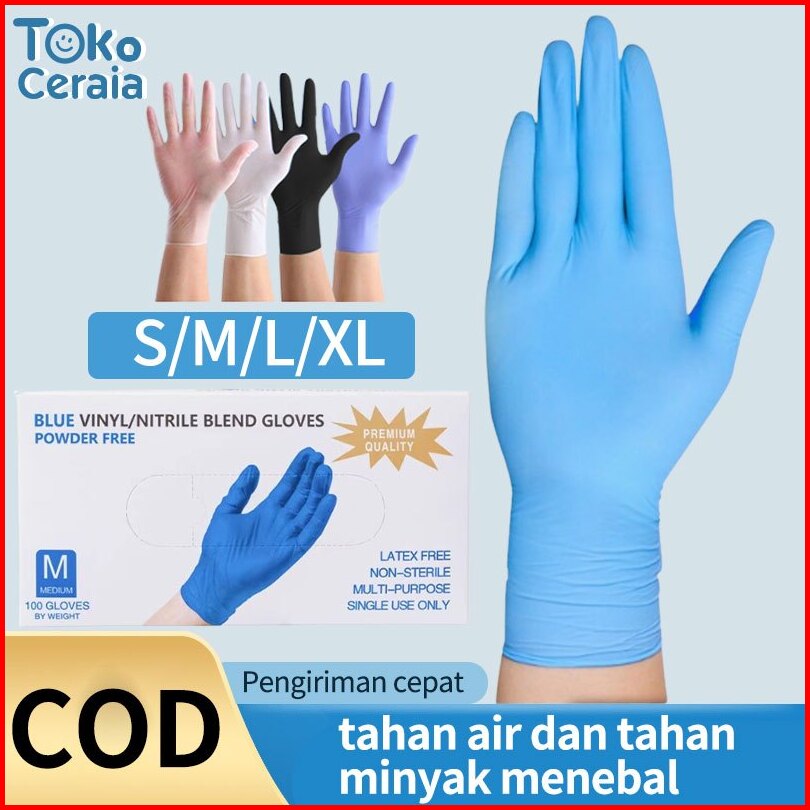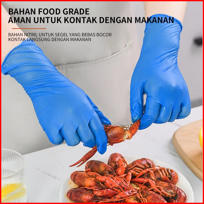 100 Pcs Sarung Tangan Nitrile Safe Glove Sarung Tangan Pengaman Tahan Minyak Dan Kotoran Yang Tebal Dan Tidak Mudah Peca