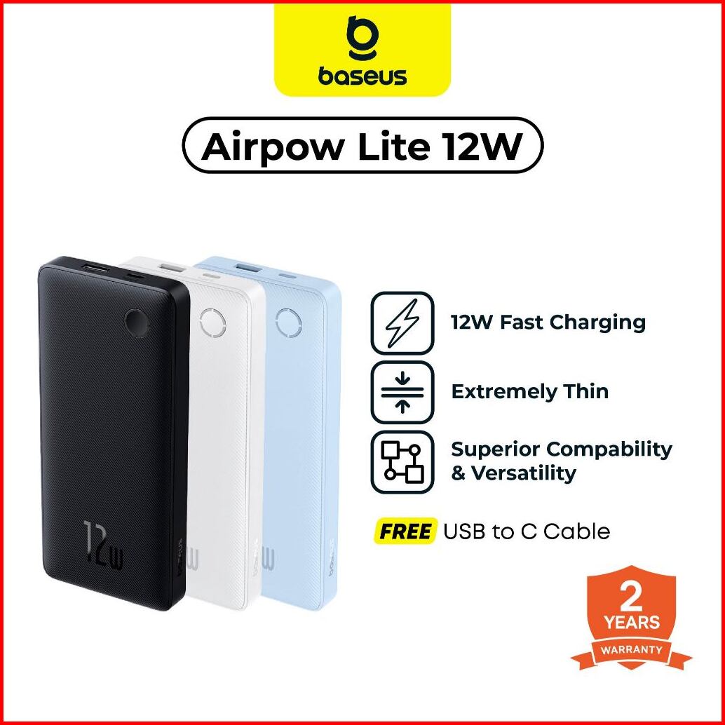 Baseus Powerbank Airpow 10000mah 12w Fast Charging 3a Cable Usb To Type-c Power Bank