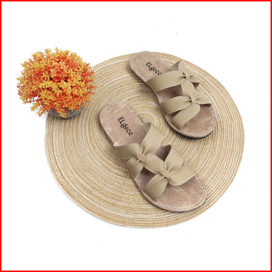 Sandal Wanita Flat Non Slip Anti Licin Sandal Kulit Wanita - Silang Dua Re
