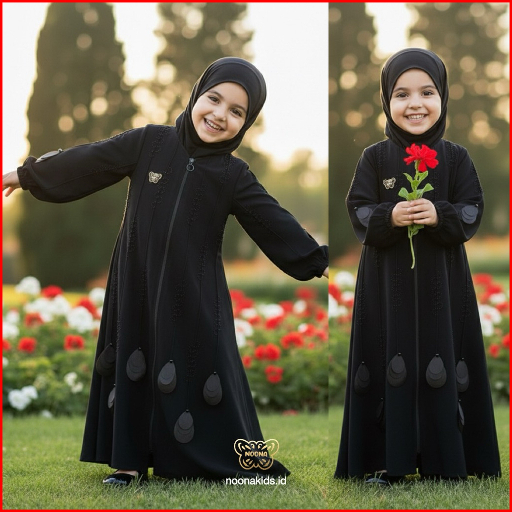 Noona Kids 1-14 Tahun Dress Muslim Anak Perempuan Hitam Gamis Anak Abaya Kids Nabila