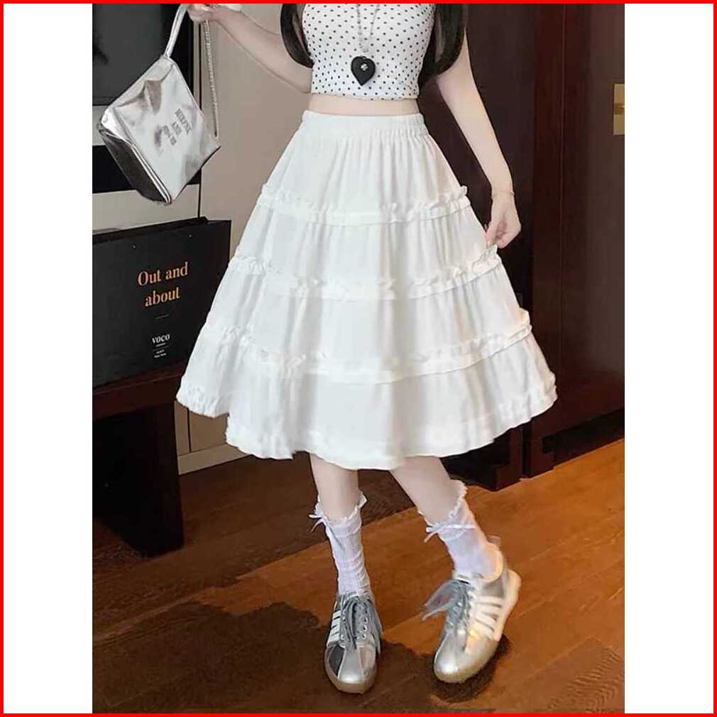 Midi Skirt Rok Kerja Kuliah Wanita Rok Wanita Korean Style Formal Casual 7 8 A-line Rok Aksen Susun Empat