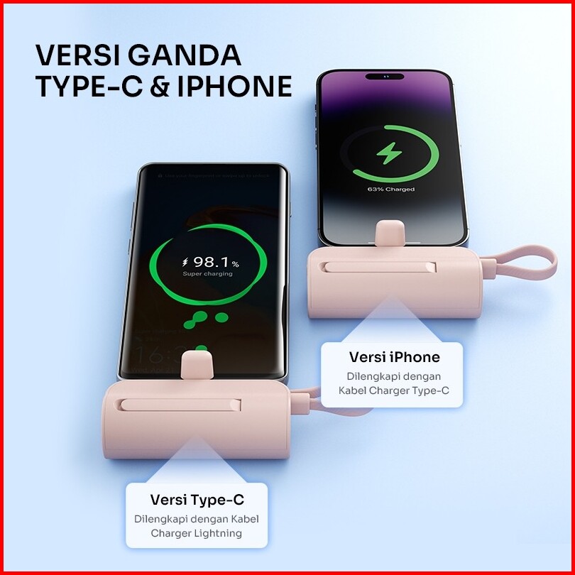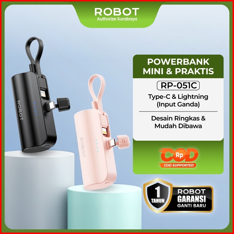 Robot Power Bank Mini 4500mah Built-in Cable Lightning Type-c Stand Holder Dual Input Compact Portable Dengan Tali Gengg