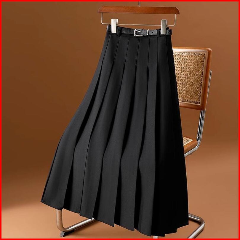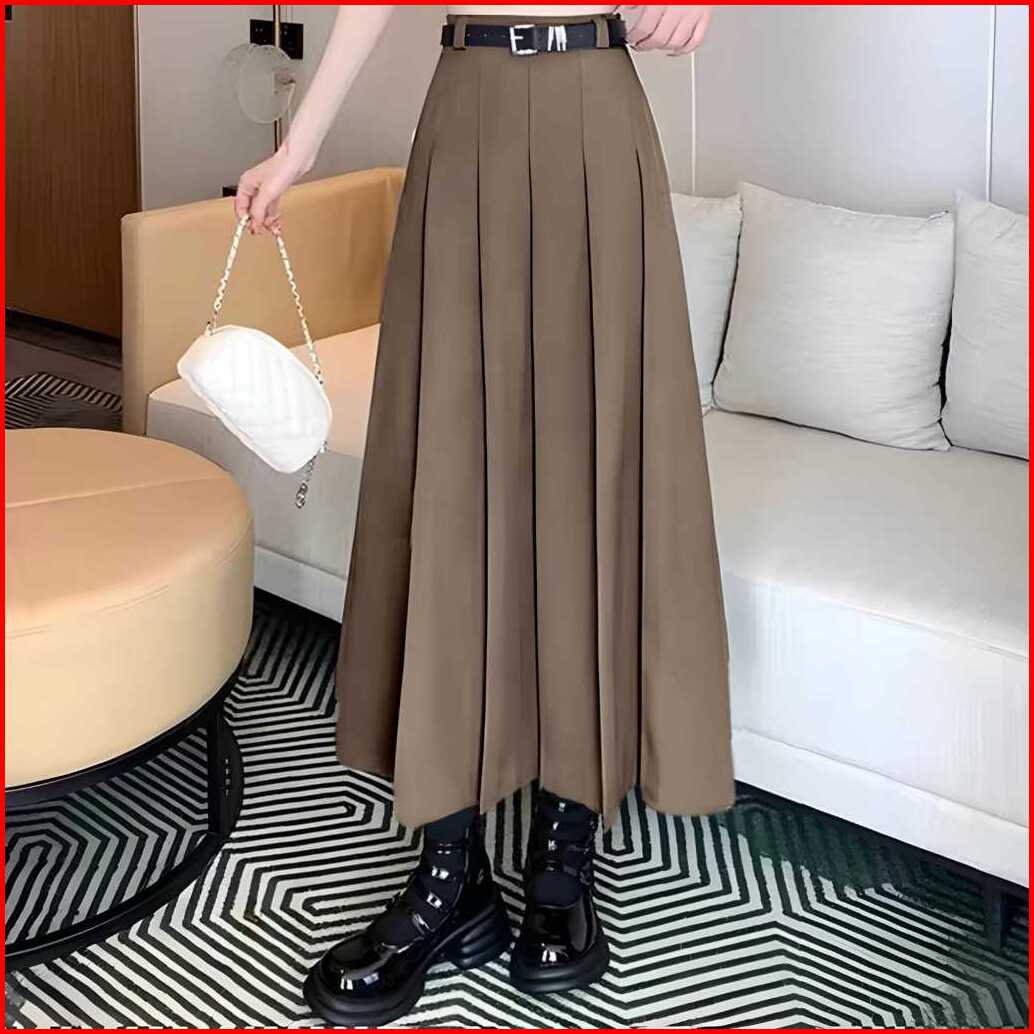 Rok Rempel Midi Bawahan Wanita Rok Kerja Model A Line Midi Bahan Semiwool Rok Mid-length Lipit A-line Flowy Skirt Cassy