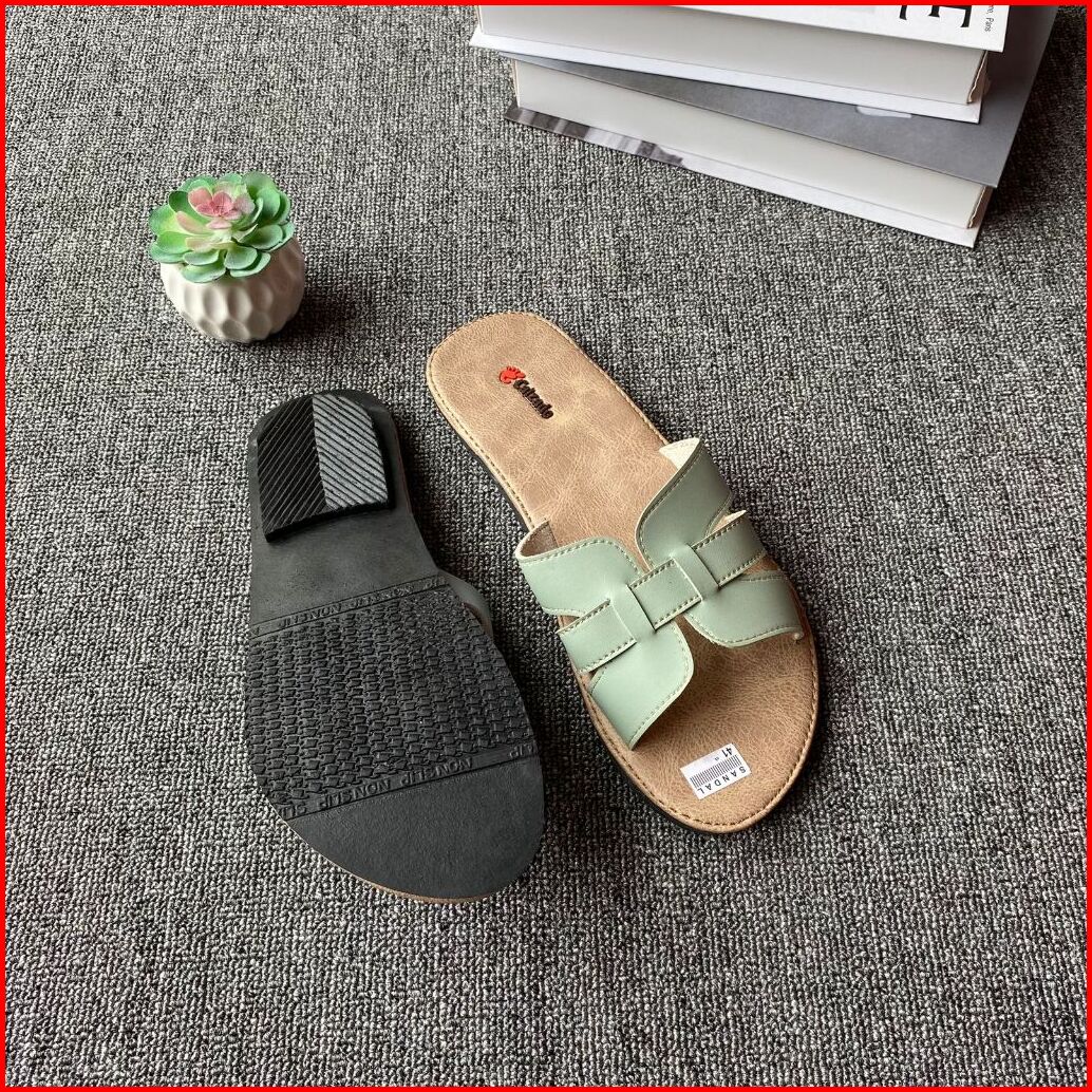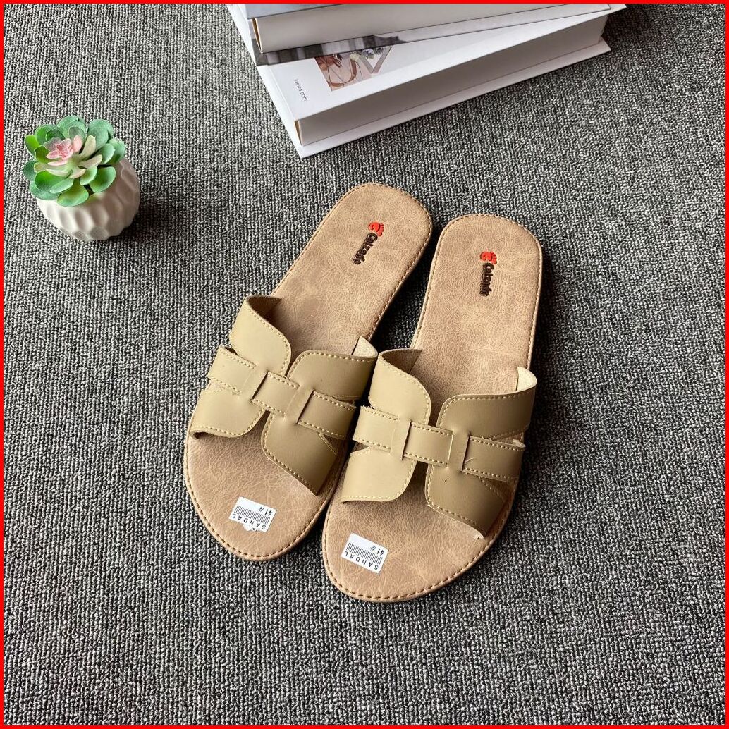Sandal Kulit Wanita Slop Non Slip Sendal Wanita Teplek Anti Licin