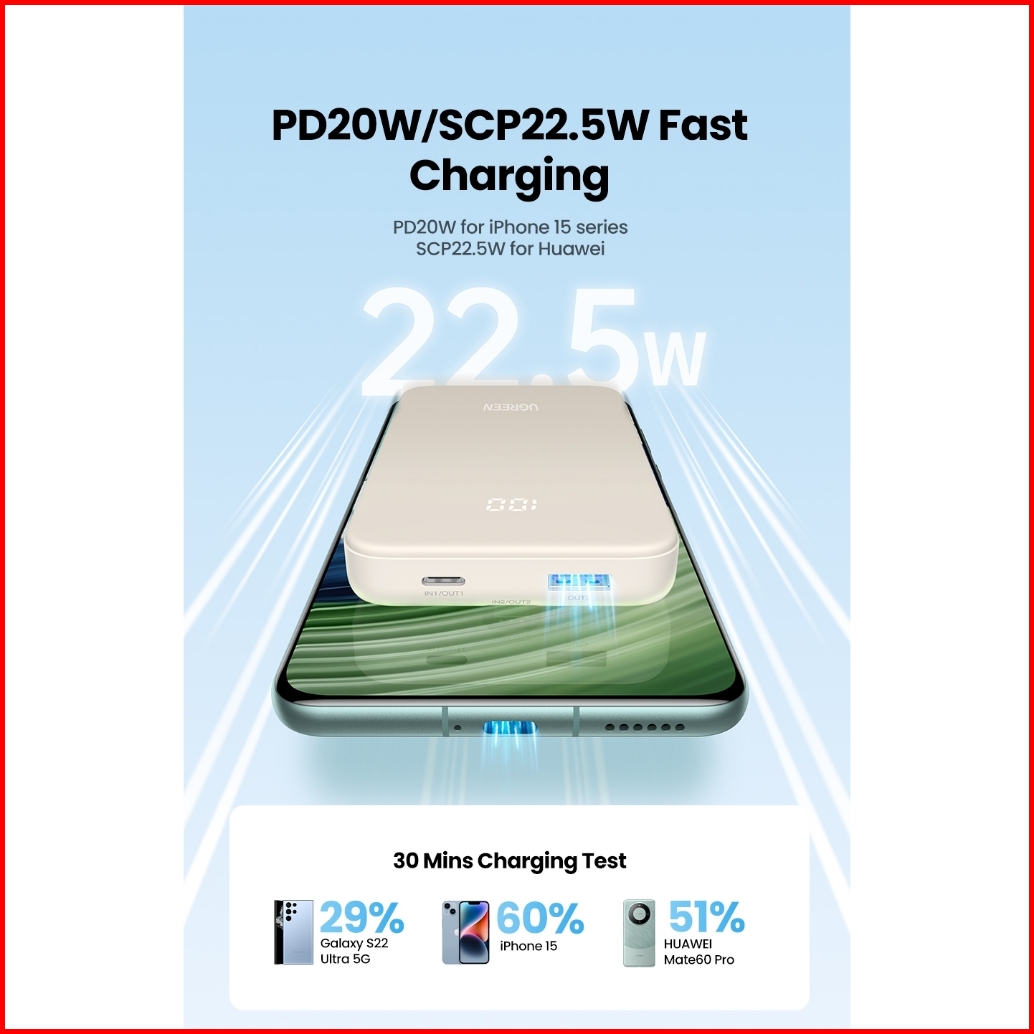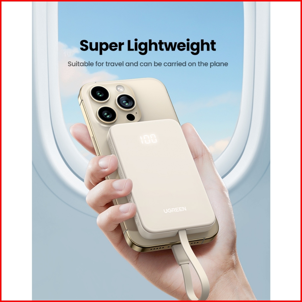 Ugreen Power Bank Ccc 10.000mah Built-in Cable Pd Type C Fast Charging 20w 25741