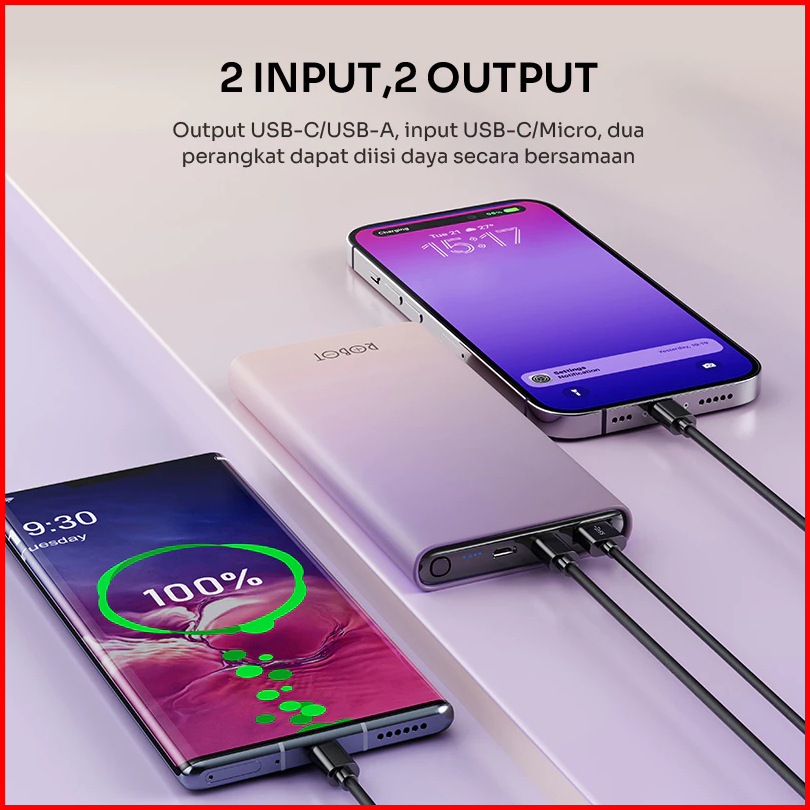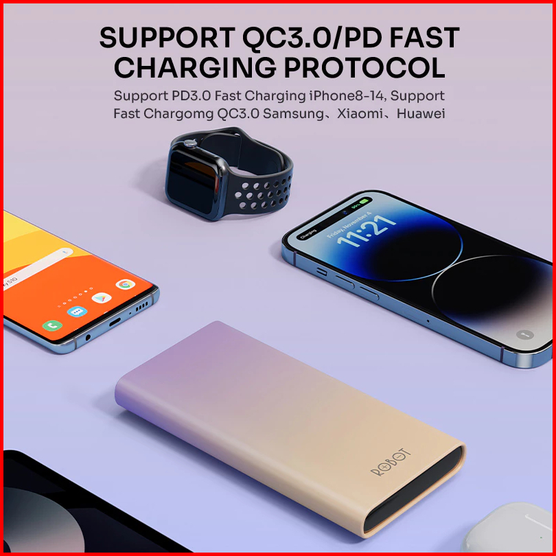 Robot Powerbank 10000mah Dual Port 20w Pd Fast Charging Quick Charging 3.0 Power Bank Gradasi Rt11 Original - Garansi 1