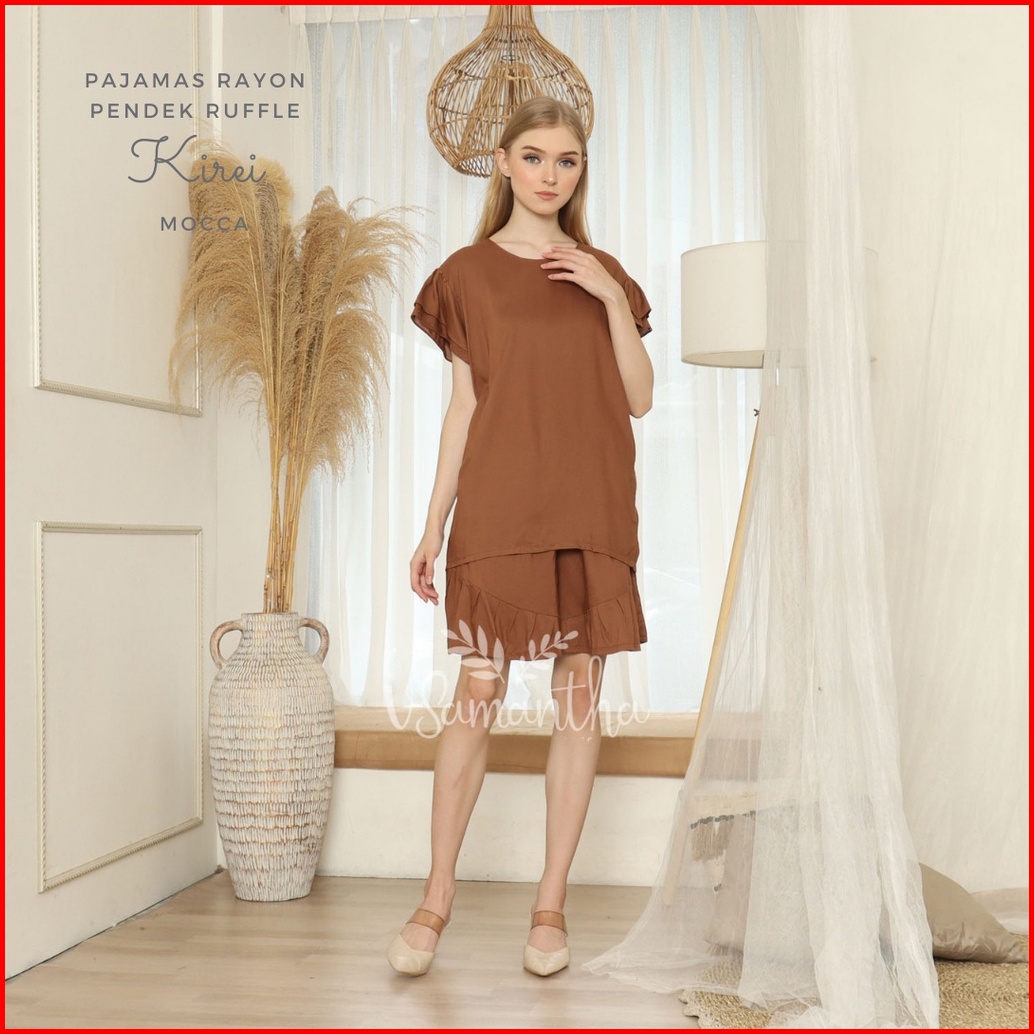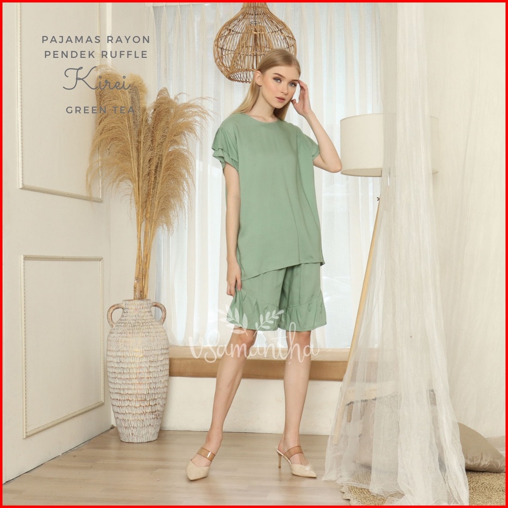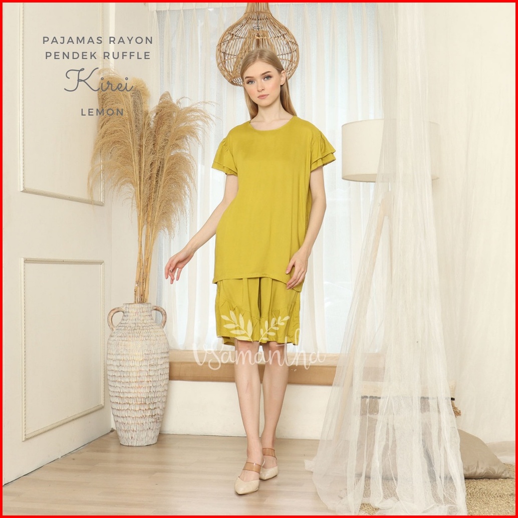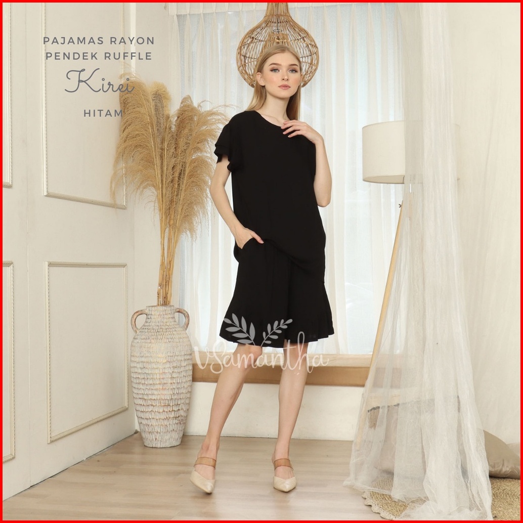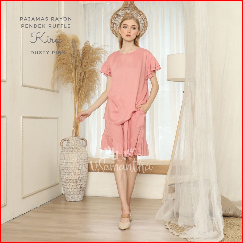 Vsamantha - One Set Piyama Rayon Pendek Ruffle Kirei