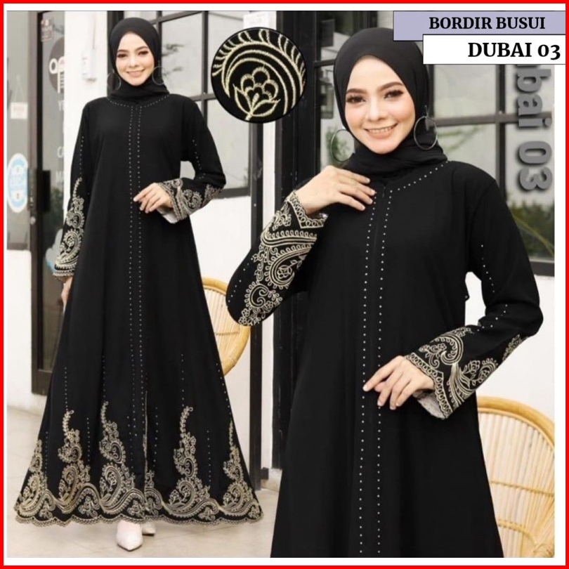 Abaya Bordir Turkey Exclucive Gamis Haji Dan Umroh Bahan Jetblack Premium Hitamnya Pekat
