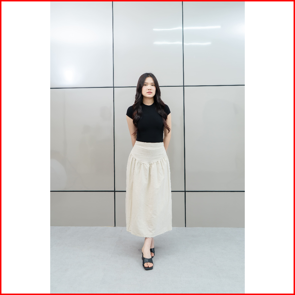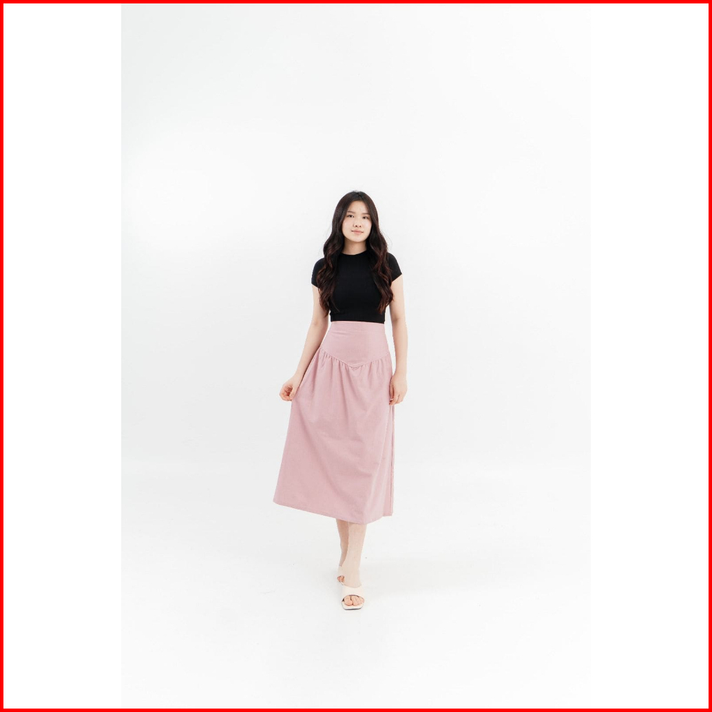 Hl - Linen Midi Skirt Naila Rok Wanita Korean Style Lucu Adem Nyaman Casual Formal Realpict