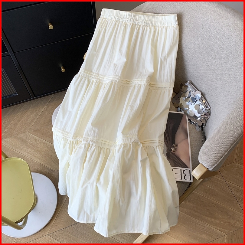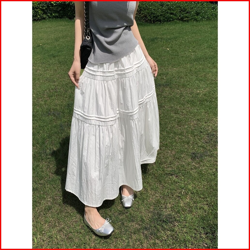 Forte.id Rok Midi 7 8 Korean Style Wanita Kekinian 2025 Fashion Skirt Wanita Highwaist Putih Krem