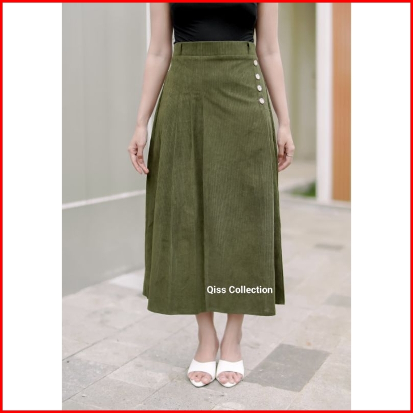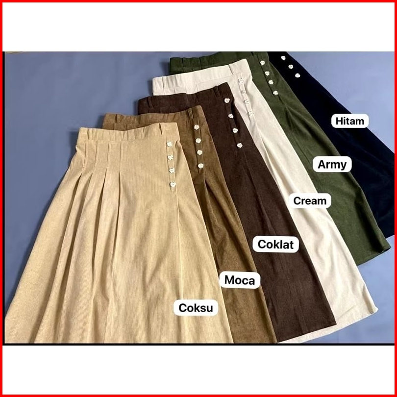 Laidy Skirt Corduray Rok Rempel Model Maxi Midi Anti Kusut Rok Flare Wanita Premium Trendy