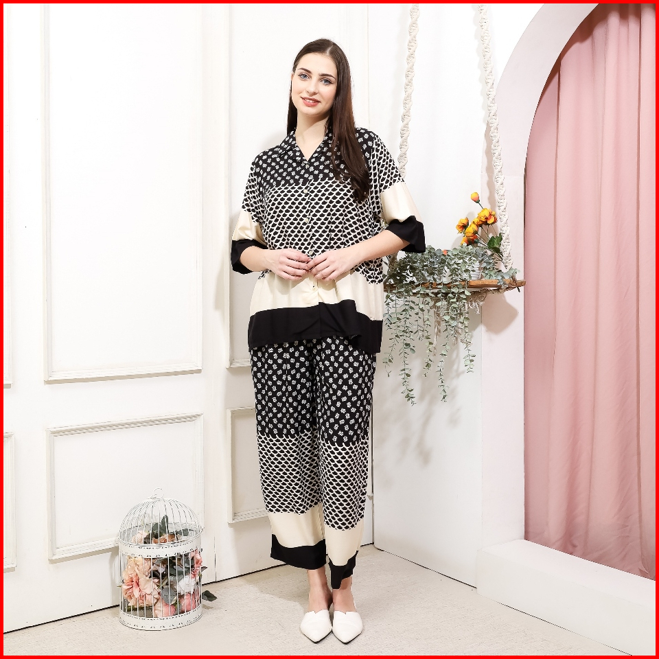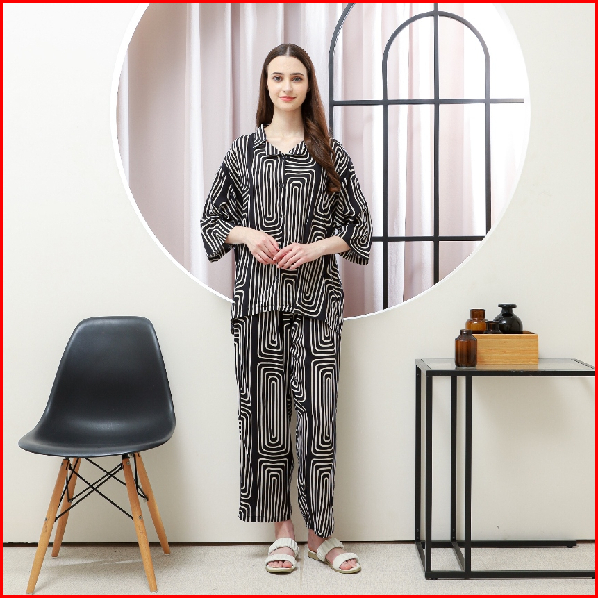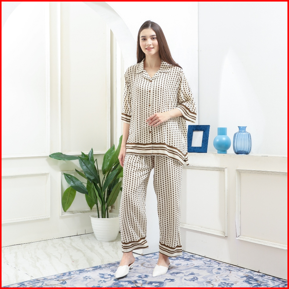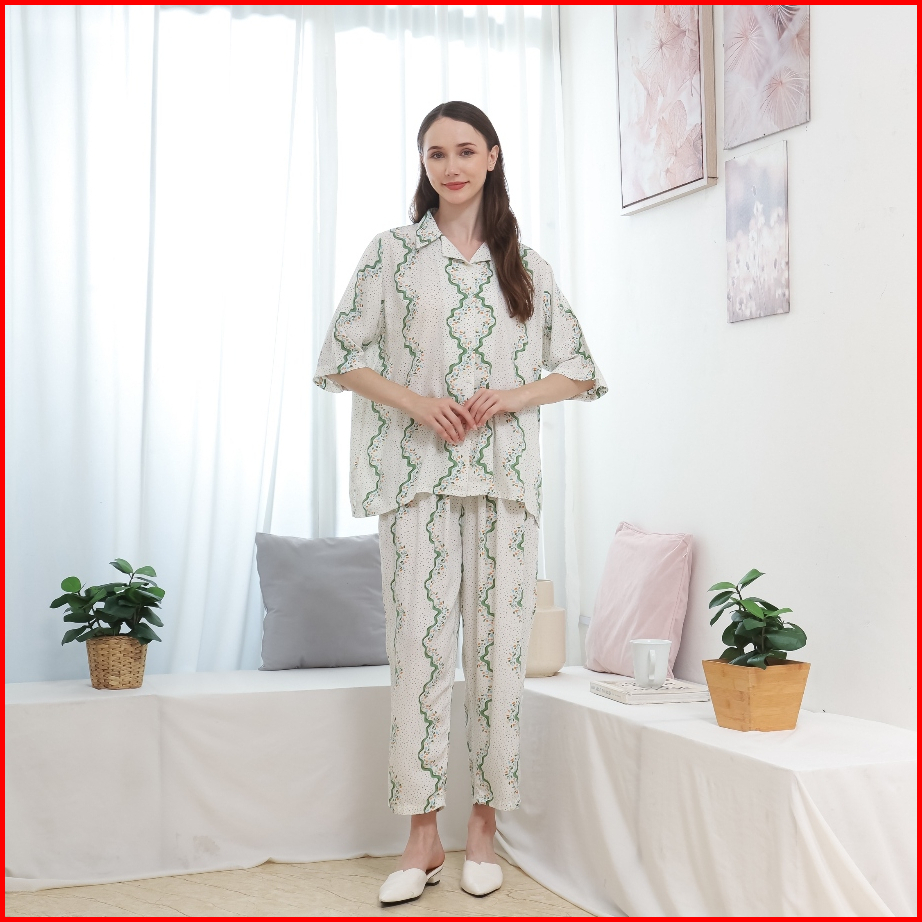 Lalucuku Pajamas Wanita Maable Piyama On Set Lengan Pendek Catton Rayon Busui Frendly
