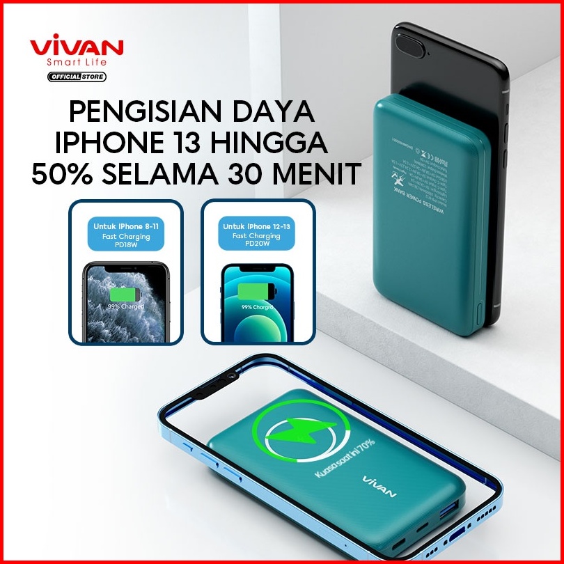 Vivan Magbank 10000 Mah Wireless 3 Output Fast Charging 20w Qc3.0 Pd Magnet Powerbank Vpb-w12