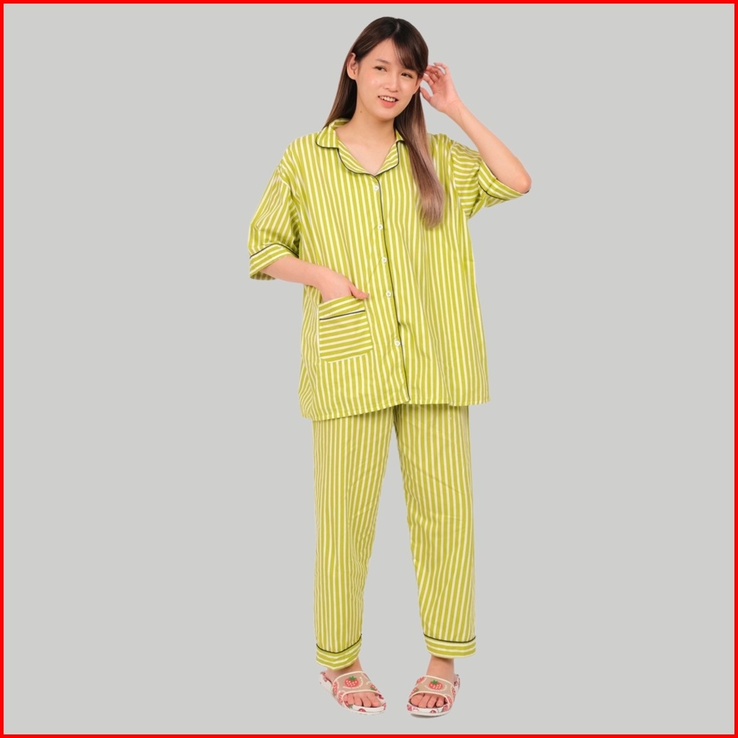 Monellina Fiona Piyama Wanita Jumbo Lengan Pendek Garis