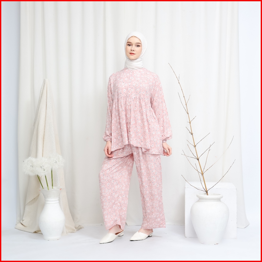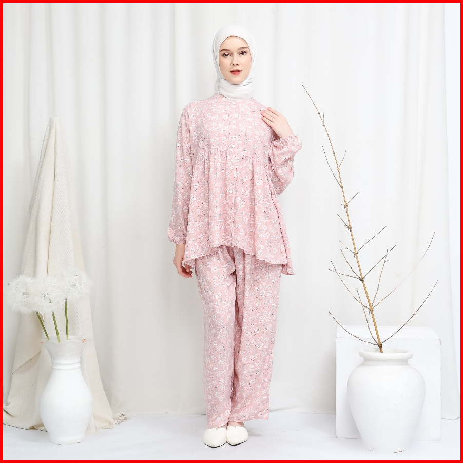 Lalucuku Pajamas Larisa Floral Haze Baju Tidur Hangout Piyama Satu Set Wanita Busui Frendly