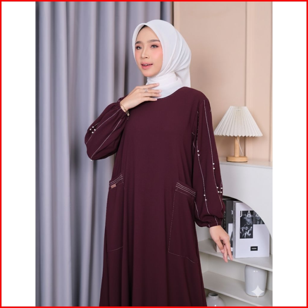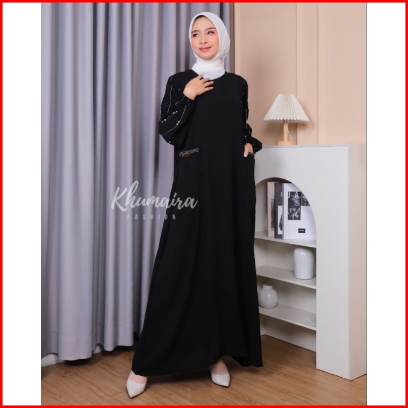 Habibah Dress Gamis Abaya S-m-l-xl-xxl Polos Bahan Crinkle Tangan Balon