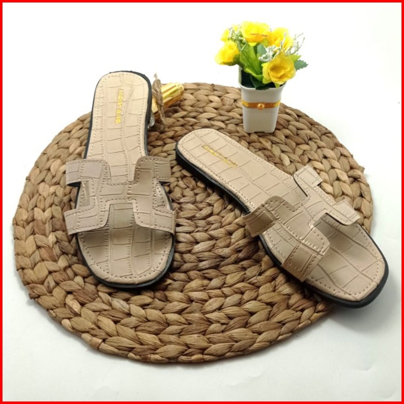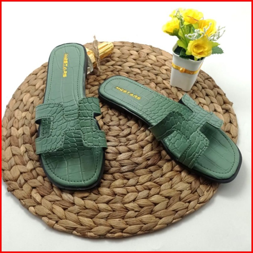 Mqstars- Sandal Flat Wanita Croco Terbaru Sendal Selop Teplek Slip On