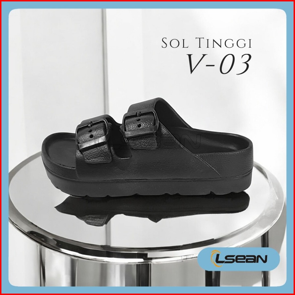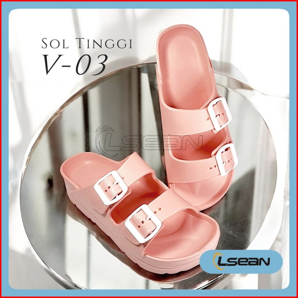Sandal Wanita Korea Slide Platform Sol Tebal Gesper Ganda V-03