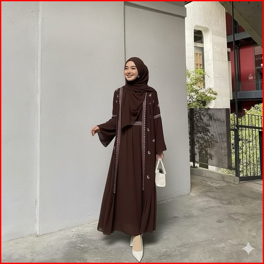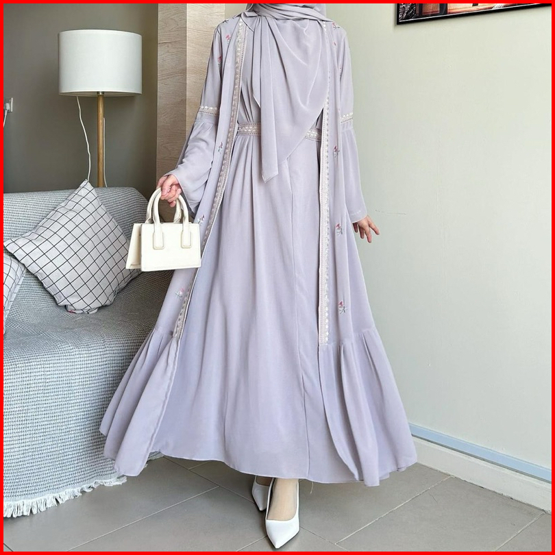 Gamis Abaya Safwa Bahan Ceruty Babydoll Full Furing Aplikasi Bordir Mewah Elegant Abaya Wanita Remaja Kekinian