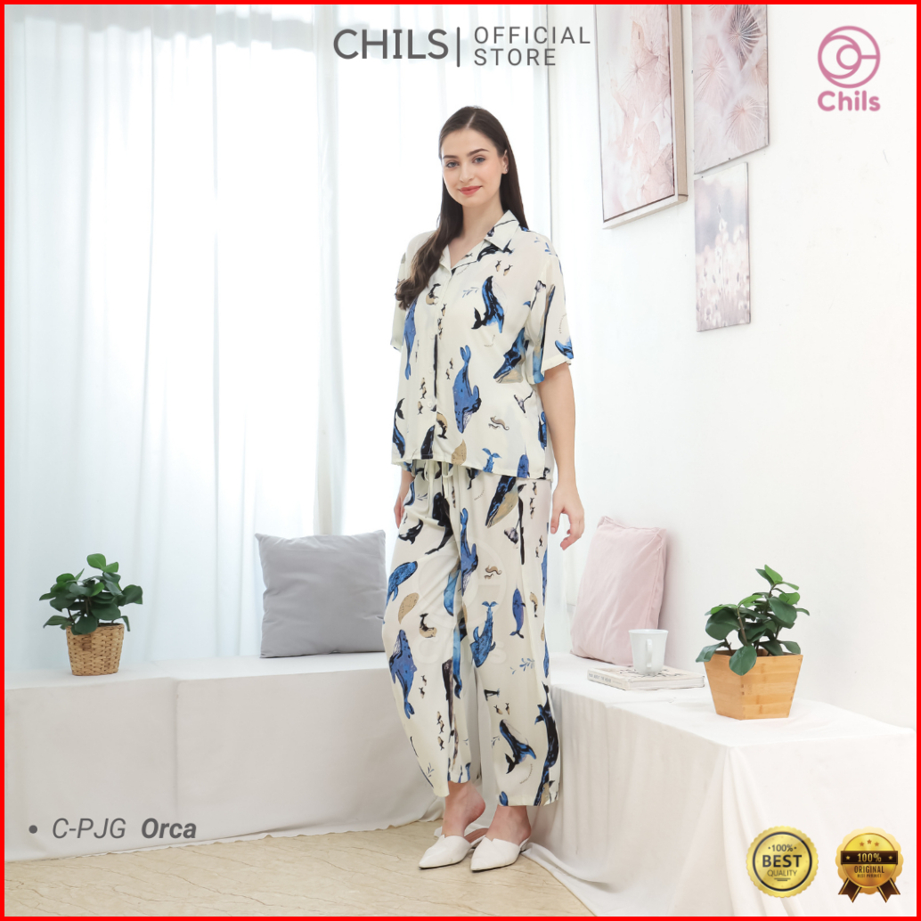 Chils - Piyama Setelan Celana Panjang Lengan Pendek Premium Lembut Halus Adem Nyaman Busui Friendly