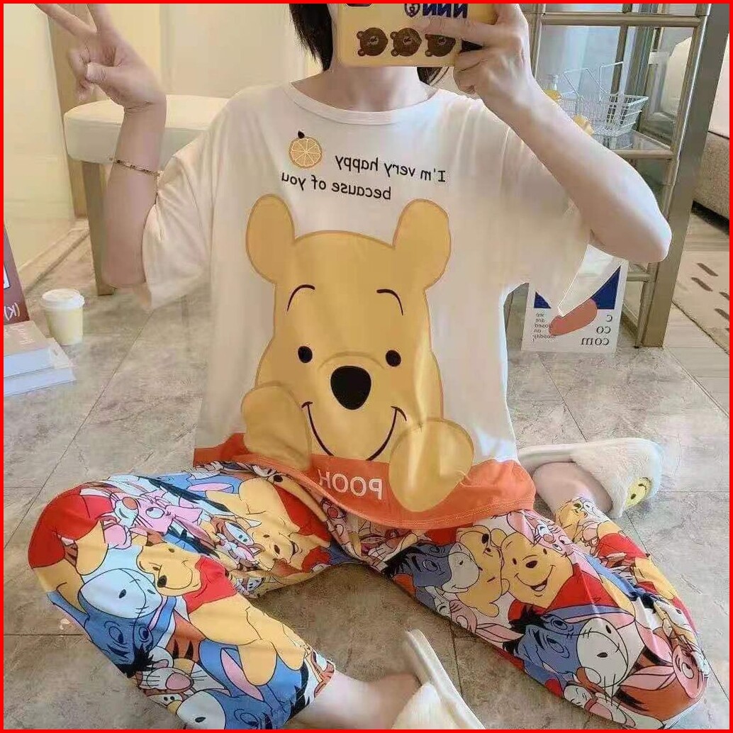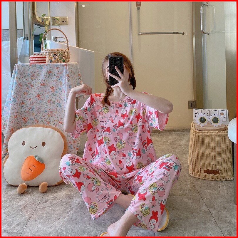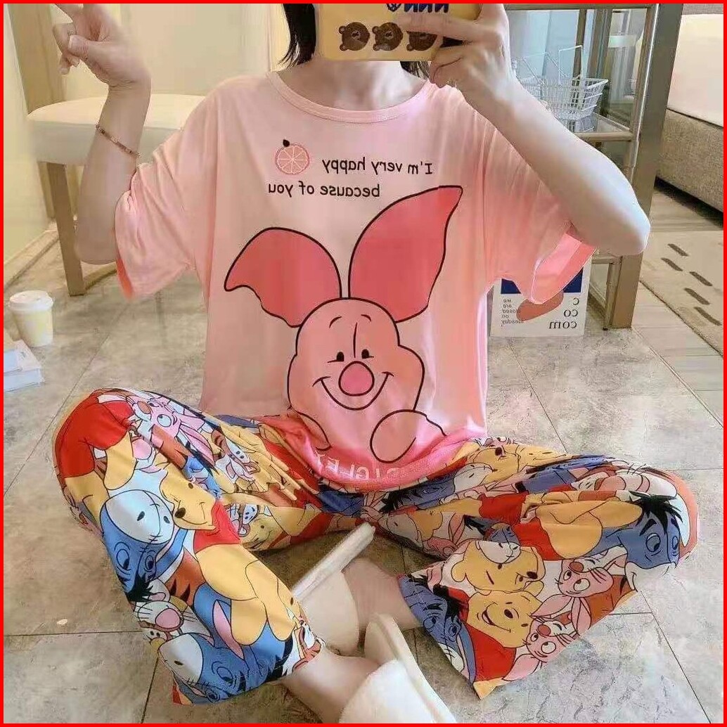Stelan Baju Tidur Wanita Dewasa Lengan Pendek Kartun Piyama Bahan Nyaman Wanita Dewasa Import